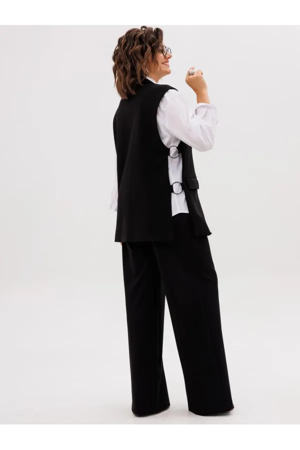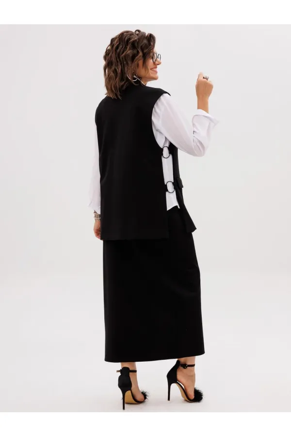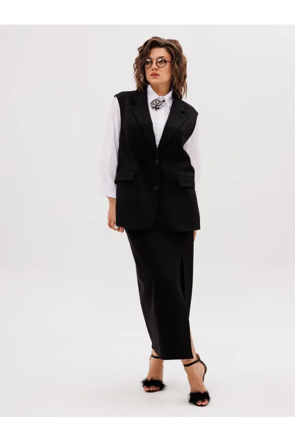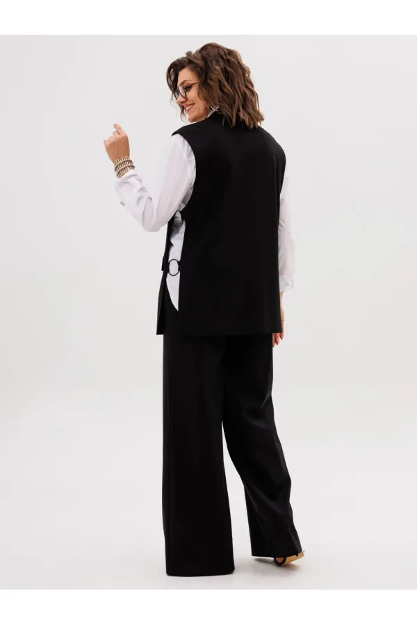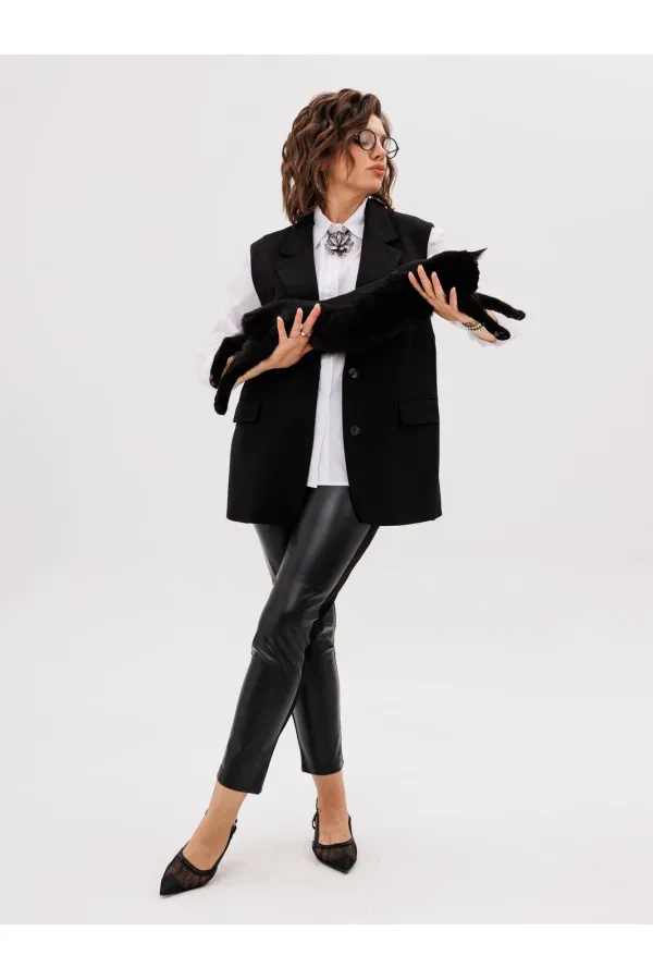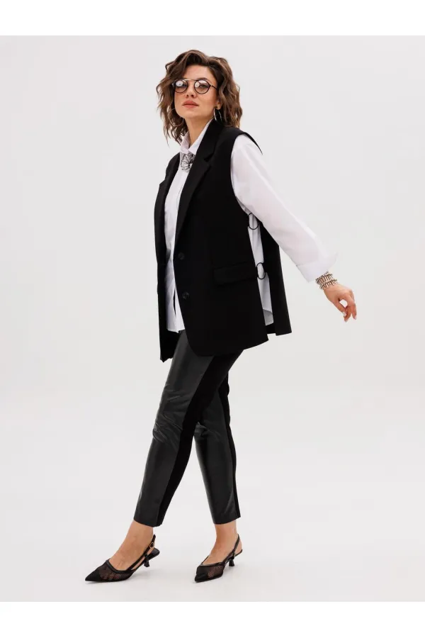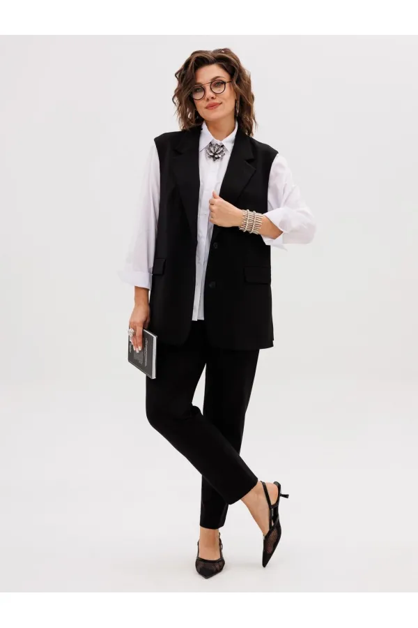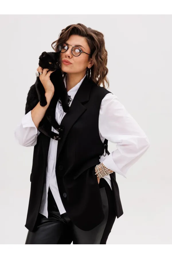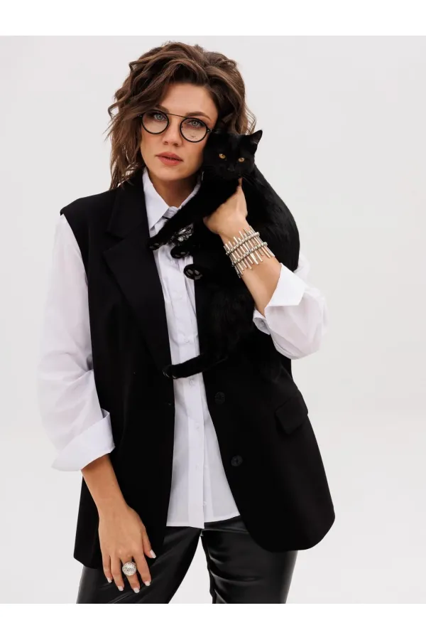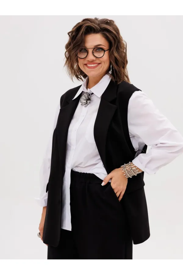 Этот элегантный трикотажный жилет, получивший гордое имя «Властелин колец», станет ключевым элементом вашего гардероба. Его строгий прямой силуэт и подкладка обеспечивают безупречную посадку, а пиджачный воротник с отложными лацканами придает образу солидность и завершенность.