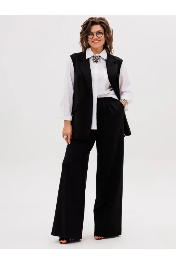 На модели рубашка 1412.1, трикотажные брюки палаццо 1425, юбка 1420, брюки 518.1, 1702 и 1743, леггинсы 1436.Замеры:
