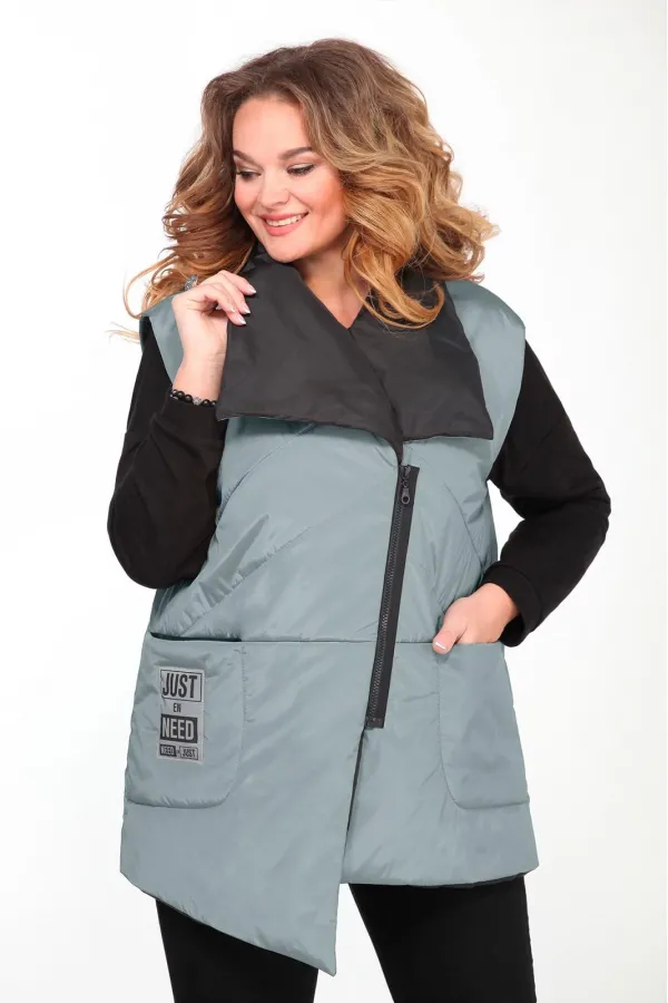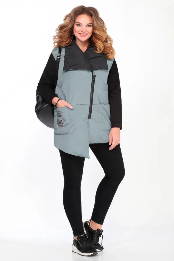 Жилет женский прямого силуэта,на синтепоне. Застежка ассиметричная на молнию. Воротник апаш. Перед отрезной по линии талии с карманами в шве. Полочка и спинка простеганы в верхней части. Линия низа переда асимметрична. Ж... Читать далее...