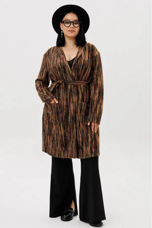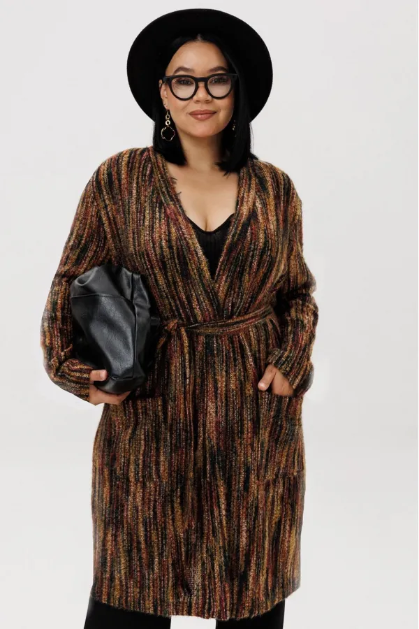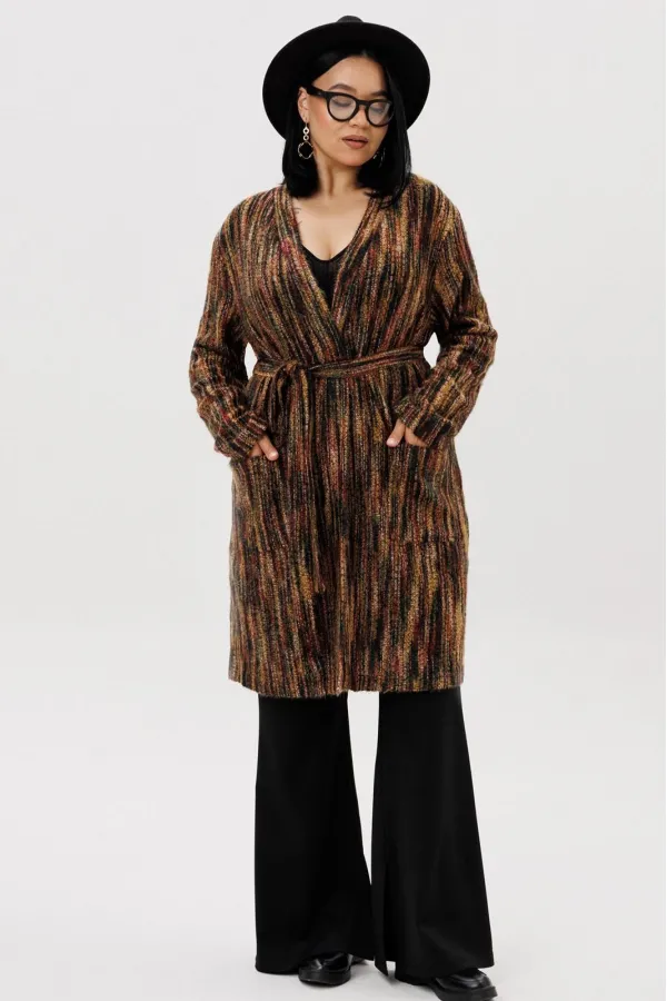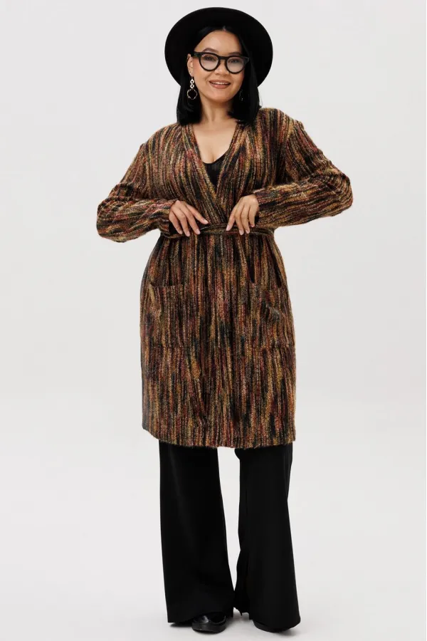 Женский кардиган – идеальный выбор для тех, кто ценит комфорт, стиль и универсальность. Эта вязаная кофта предназначена для женщин, желающих всегда выглядеть модно, будь то осень, зима,  весна или лето. Благодаря своему крою, изделие подходит как для повседневной носки, так и для особых случаев, подчеркивая вашу индивидуальность и женственность. Лёгкий трикотажный материал делает эту вещь отличным вариантом для теплого времени года, обеспечивает необходимое тепло в прохладную погоду. Кофта отлично садится на любые типы фигуры в стиле оверсайз, идеально подходит для беременных. Модель выполнена в трендовых цветах 2025 года, что гарантирует актуальность вашего гардероба. Этот женский кардиган легко комбинируется с другой одеждой – от строгих брюк до легких платьев, подходит для офиса и прогулок. Особое внимание уделено деталям и аккуратной отделке. Чтобы ничего не сковывало ваши движения, а для практичности - накладные карманы и пояс. Нарядная и женственная модель подчеркивает достоинства фигуры и делает образ завершенным. Главное конкурентное преимущество – сочетание качества премиальной вязки и современного дизайна, что выделяет этот товар среди других кофт и кардиганов на рынке. Если вы ищете стильные, трендовые и одновременно практичные решения, выбирайте этот вариант – он создан для женщин, которые ценят комфорт и индивидуальность. Длина по спинке: (50-54)-88см,  (56-60) -92см, Длина рукава: (50-54)-62см, (56-60): 64см