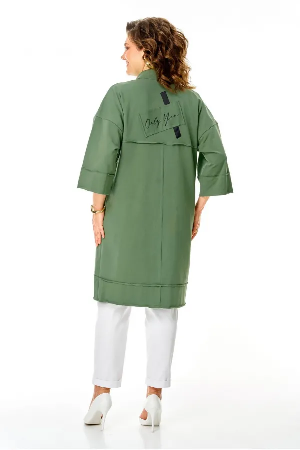 Кардиган женский прямого силуэта из трикотажной ткани (трехнитка-футер). На полочке и спинке расположены декоративные, необработанные швы. В верхней и нижней части переда есть настрочные элементы с печатью и тесьмой. П... Читать далее...