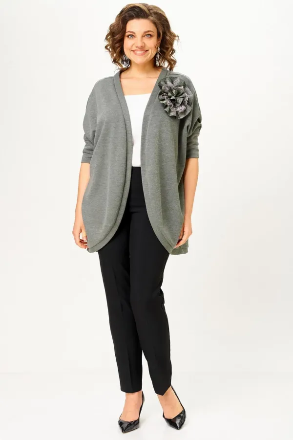 Кардиган женский с рукавом летучая мышь, свободного кроя, без застежки. По переду и горловине спинки притачная планка. Низ рукава с манжетой. Украшение в комплект не входит. Длина по спинке: 80 см. Длина рукава от горл... Читать далее...