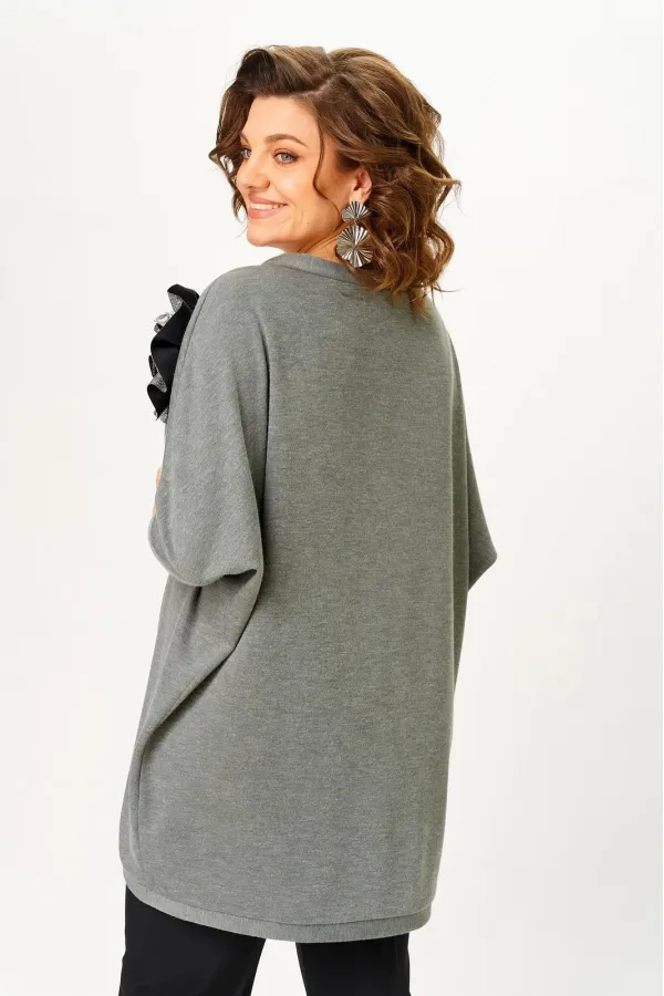 Кардиган женский с рукавом летучая мышь, свободного кроя, без застежки. По переду и горловине спинки притачная планка. Низ рукава с манжетой.