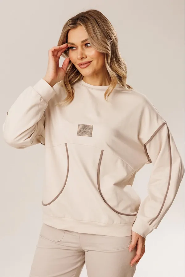 Силуэт: Свободный Вырез горловины: округлый Дополнительное описание: джемпер из качественной трикотажной ткани, с декоративными отделочными кантами, нашивкой и фигурным подрезом по полочке. Рукав спущенны... Читать далее...