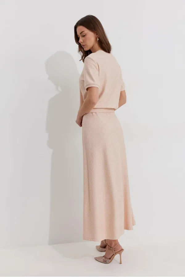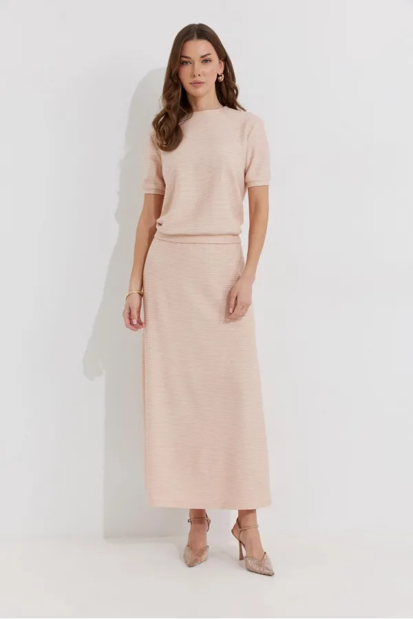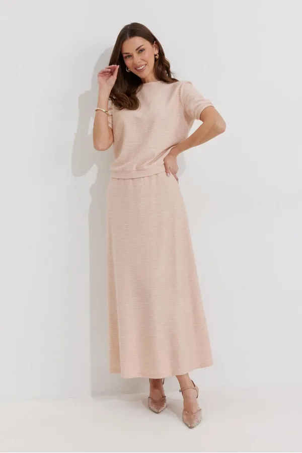 Джемпер полуприлегающего силуэта из трикотажного полотна. Горловина округлая, рукав втачной, по низу манжета. По низу джемпера притачной пояс.