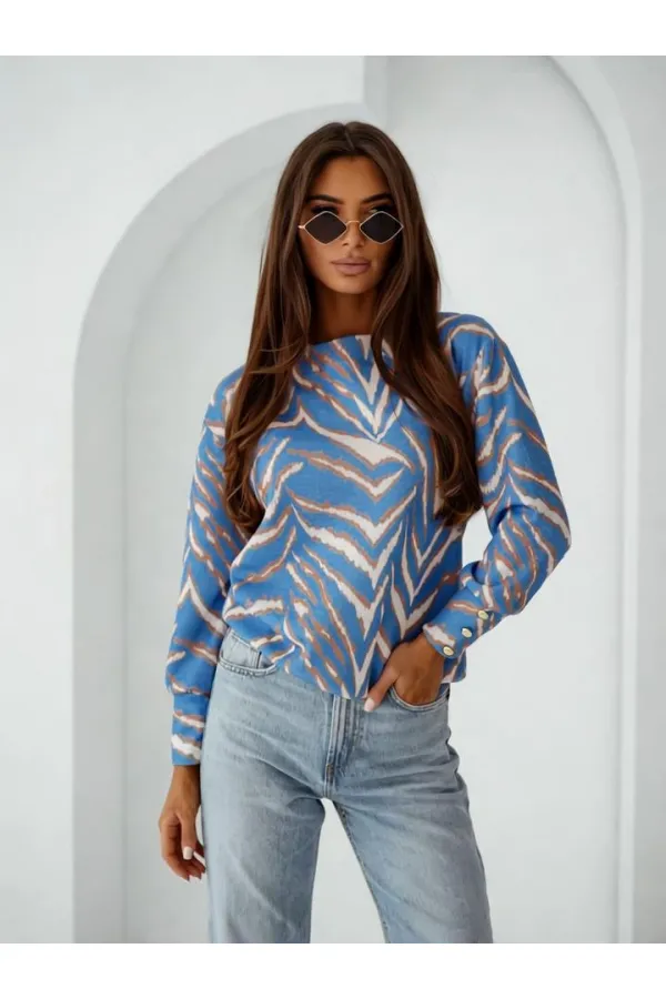 Женский джемпер Nika.pl. Мягкий трикотаж из акрила приятен к телу и дарит ощущение комфорта. Прямой крой подойдет для фигуры любого типа. Модель дополнена вырезом-лодочкой горловины и длинными рукавами. Рукава имеют длинную манжету с декоративными пуговицами. По низу джемпера манжета-резинка.