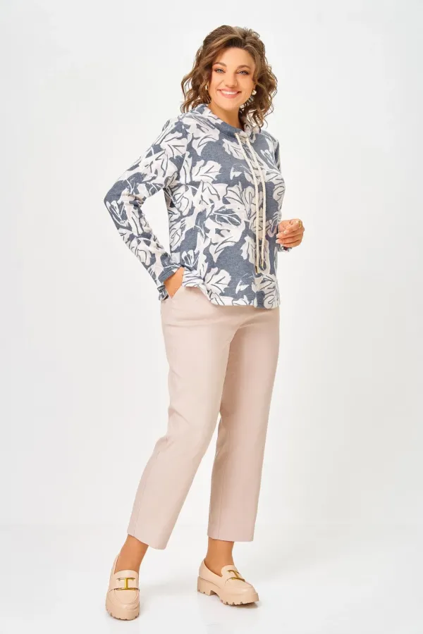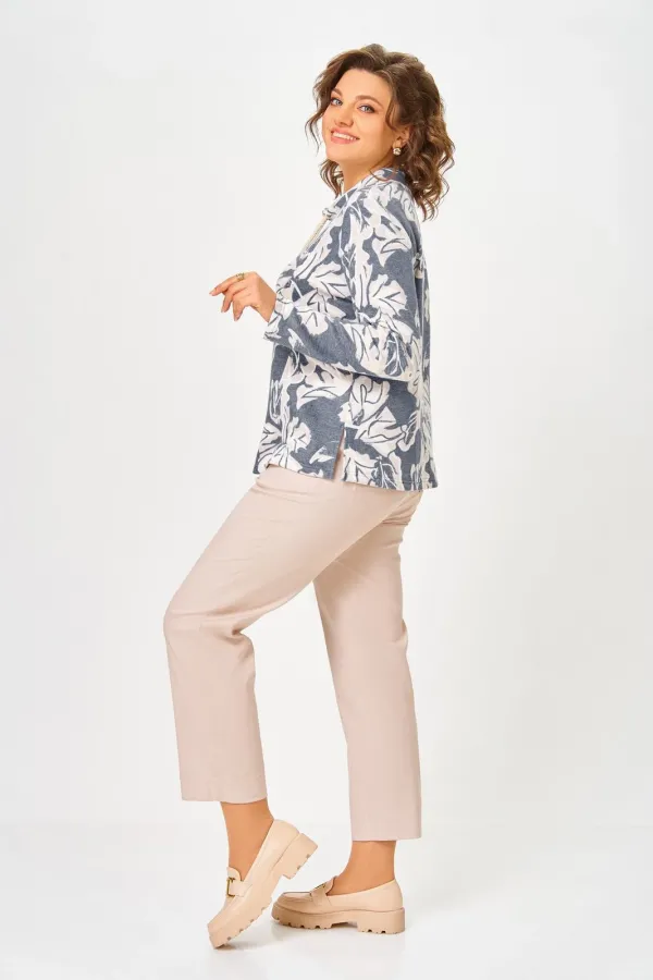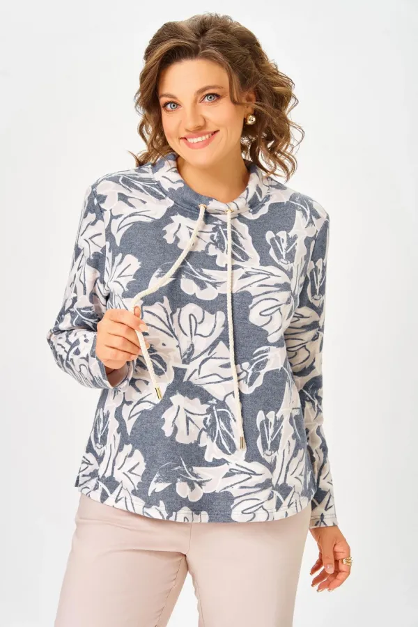 Код Товара: 883 дымчато-синий/принт «бежево- молочные абстрактные цветы» Swa