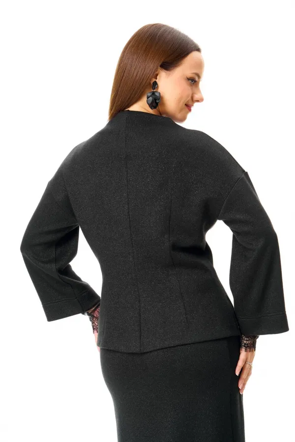 Классический черный трикотажный джемпер со съемными кружевными манжетами.