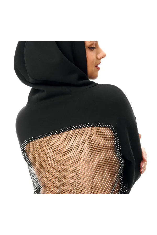 Сочетание нежности и дерзости в одной модели. Это не просто худи, а настоящий арт-объект для вашего гардероба. Мягкий и уютный крой спереди идеально контрастирует с соблазнительной спинкой, украшенной сеткой со стразами.