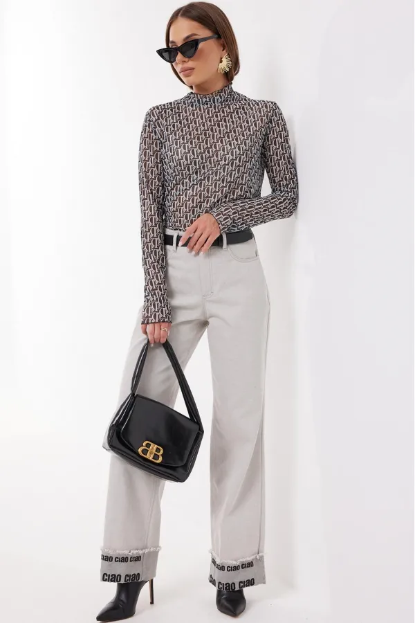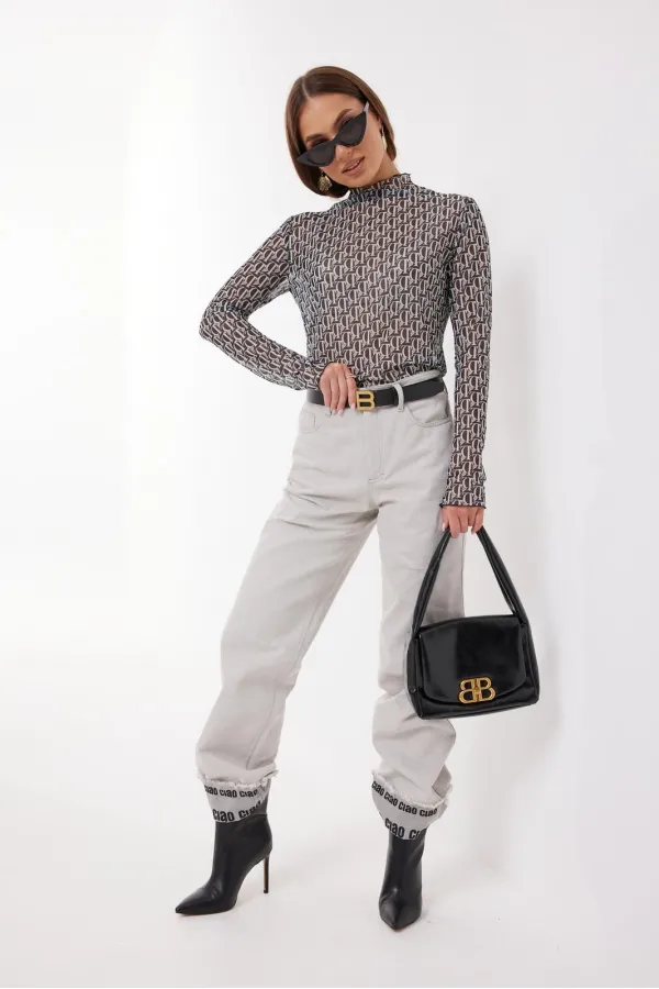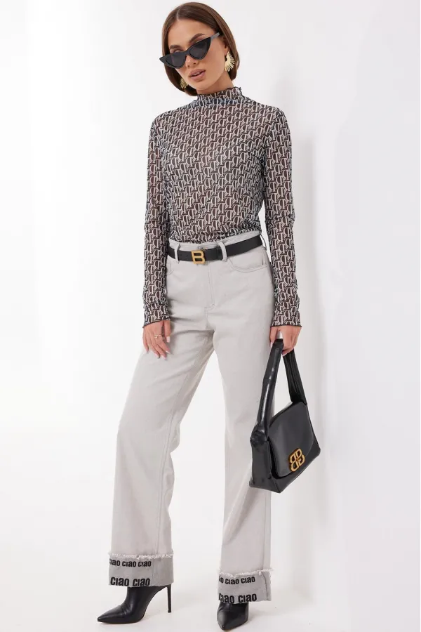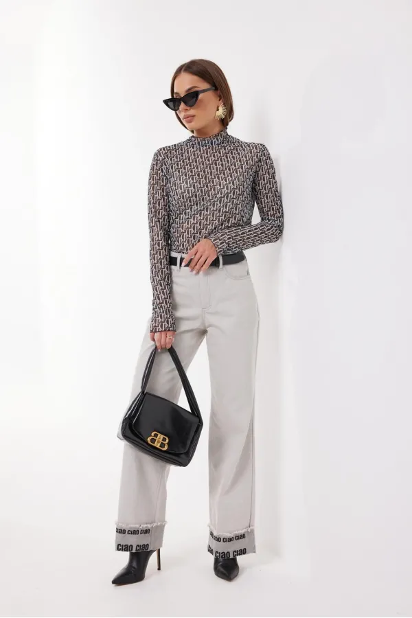 Джемпер прилегающего силуэта из трикотажного полотна «сетка». Рукав длинный. Горловина с цельнокроенной стойкой.