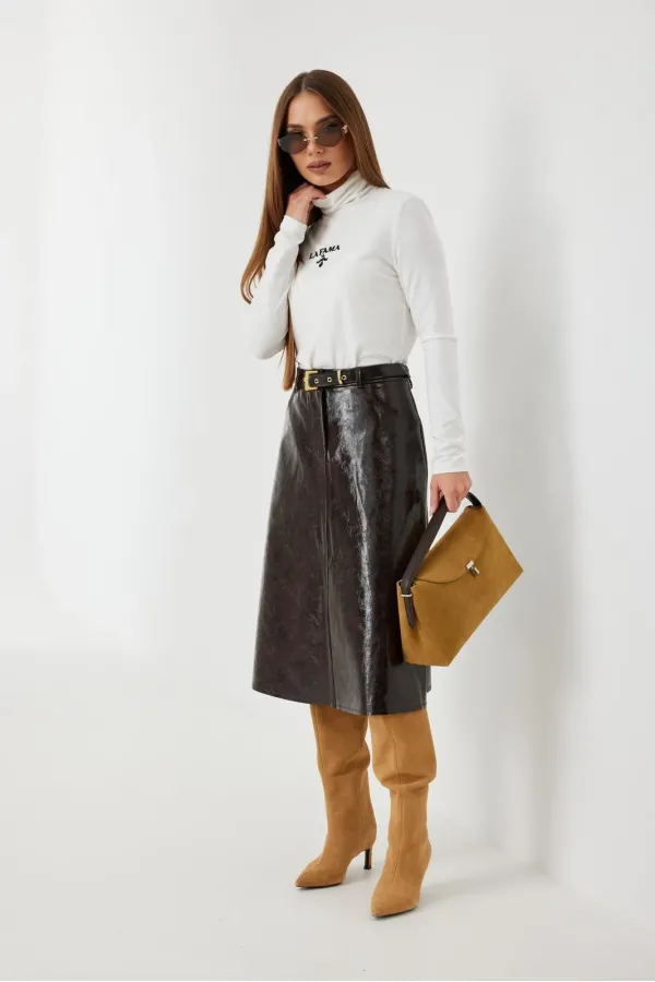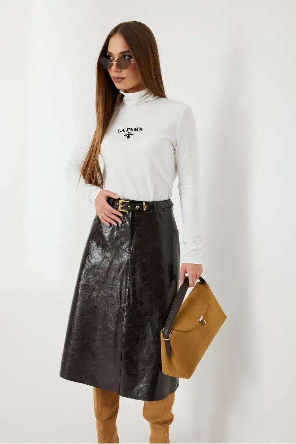 Джемпер женский прилегающего силуэта из мягкого трикотажа, с интересной печатью на переде. Воротник стойка, рукав втачной одношовный узкий.