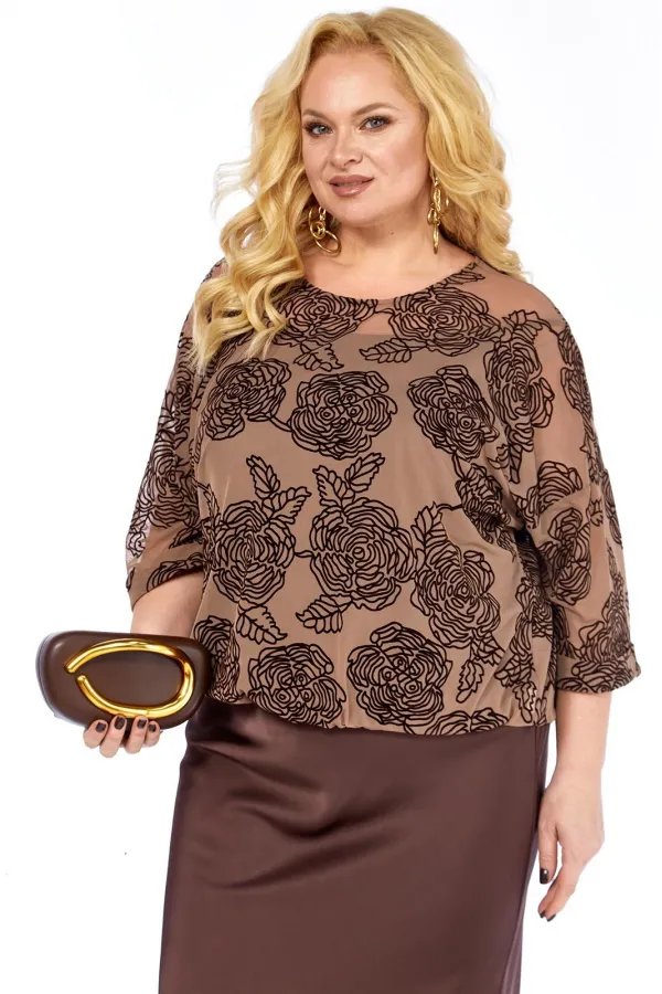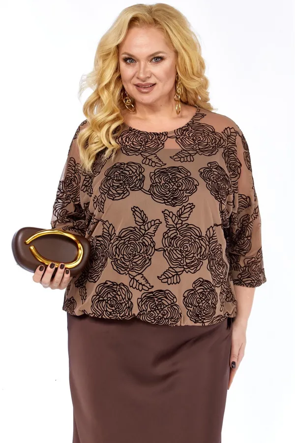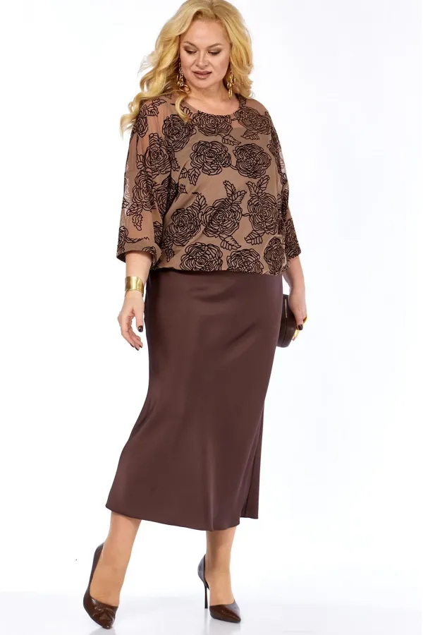 модель состоит из блузы топа и юбки. Блуза полуприлегающего кроя