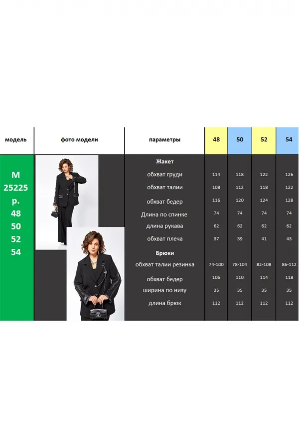 | Ткань | Жакет+брюки П/Э 49% вискоза 48% спандекс 3% |