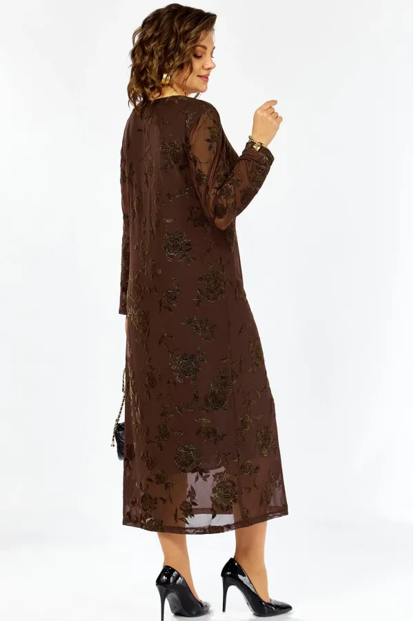 Роскошный плательный комплект. Платье на трикотажной подкладке полуприлегающего силуэта из мягкой стретч-сетки украшенной флоковым напылением с позолотой создает эффект дорогого кружевного орнамента. Образ дополняет Свер... Читать далее...