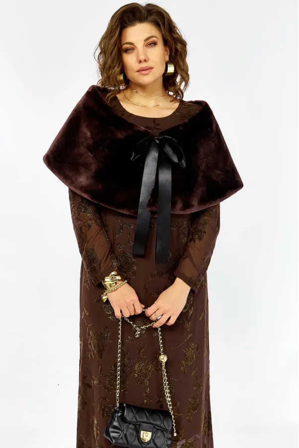 Меховая горжетка в глубоких тёмных тонах её бархатистая текстура контрастирует с лёгкостью платья ,этот комплект идеально подойдёт для вечерних мероприятий торжеств и особых случаев.