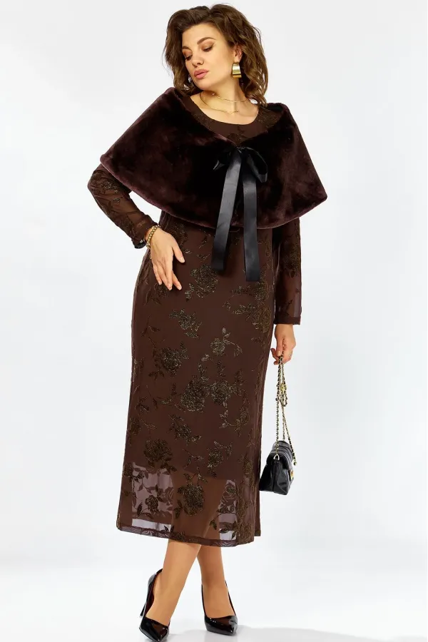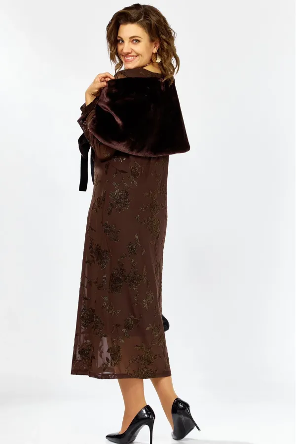Роскошный плательный комплект с изящной меховой горжеткой . Платье на трикотажной подкладке полуприлегающего силуэта из мягкой стретч-сетки украшенной флоковым напылением с позолотой создает эффект дорогого кружевного ор... Читать далее...