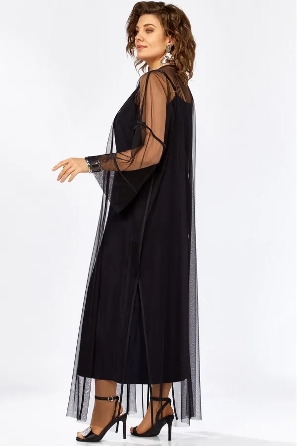 Изысканный комплект сочетает в себе платье из плотного атласа, свободного А образного силуэта , на Тонких бретелях и воздушную кардиган-шазюбль из сетки создавая образ утончённой элегантности женственности