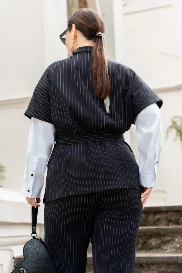 Костюм жилет и брюки из класической костюмной полоски. Безусловная класика совремееная и всегда привлекает взгляды.Жилет прямого кроя со съёмным поясом,воротник пиджачного типа. Жилет с центральной бортовой застёжкой на ... Читать далее...