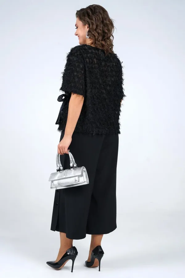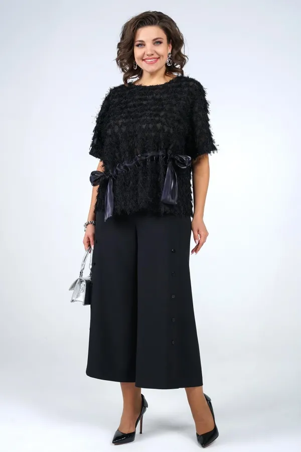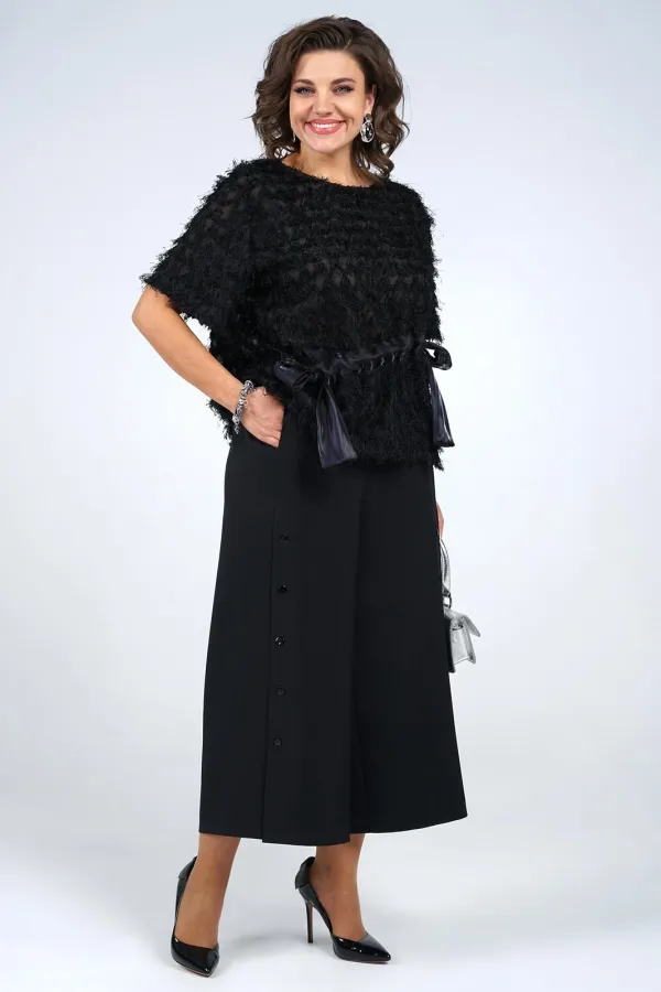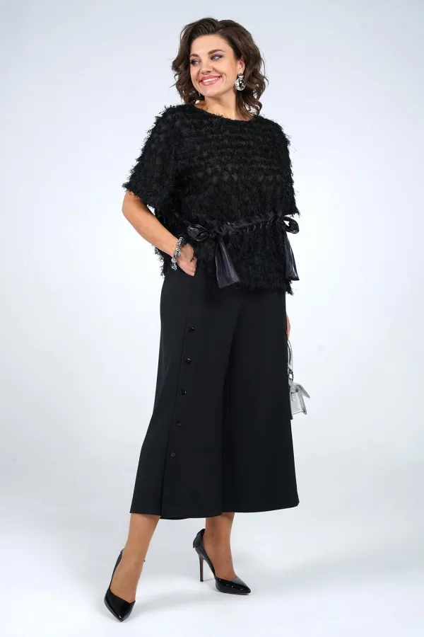 | Ткань | Блуза платьево-костюмного ассортимента Полиэстер 78% Вискоза 18% Спандекс 4% Кюлоты платьево-костюмного ассортимента Полиэстер 95% Эластан 5% |