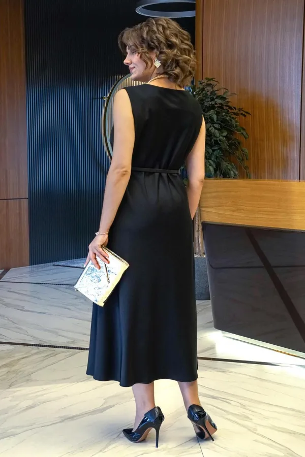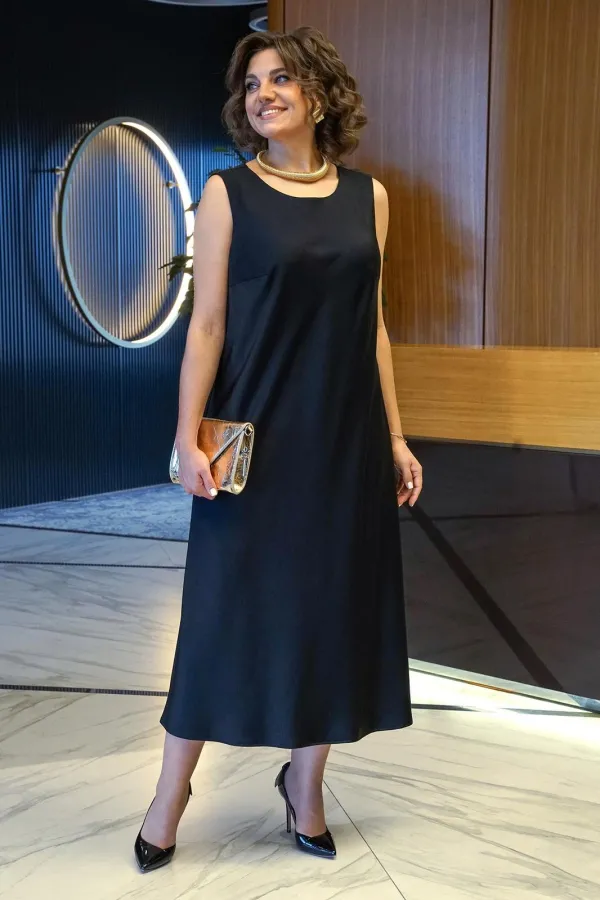 Платье полуприлегающего силуэта вверху книзу типа «рыбки» раскроено по косой. Перед с нагрудными выточками.