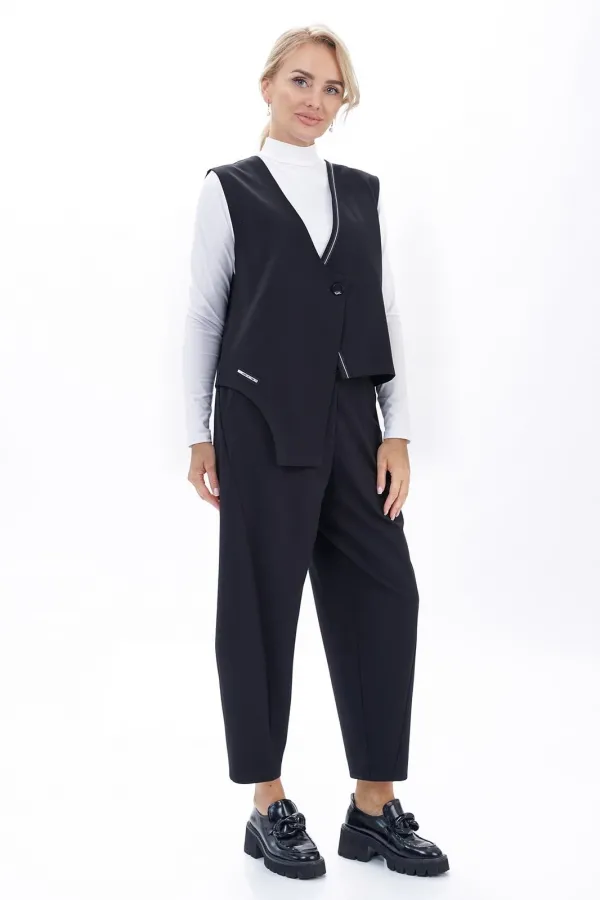 Комплект женский 3-х предметный состоит из жилета, блузы и брюк.