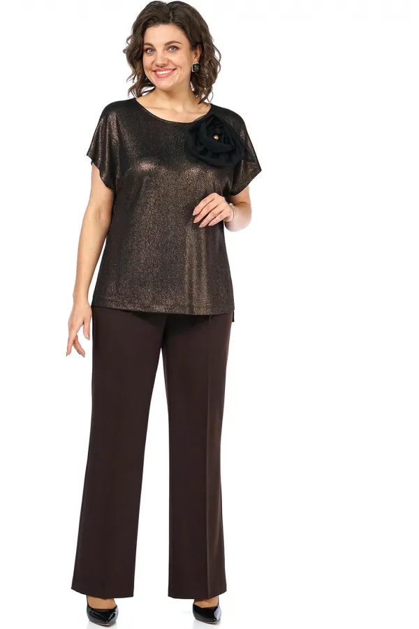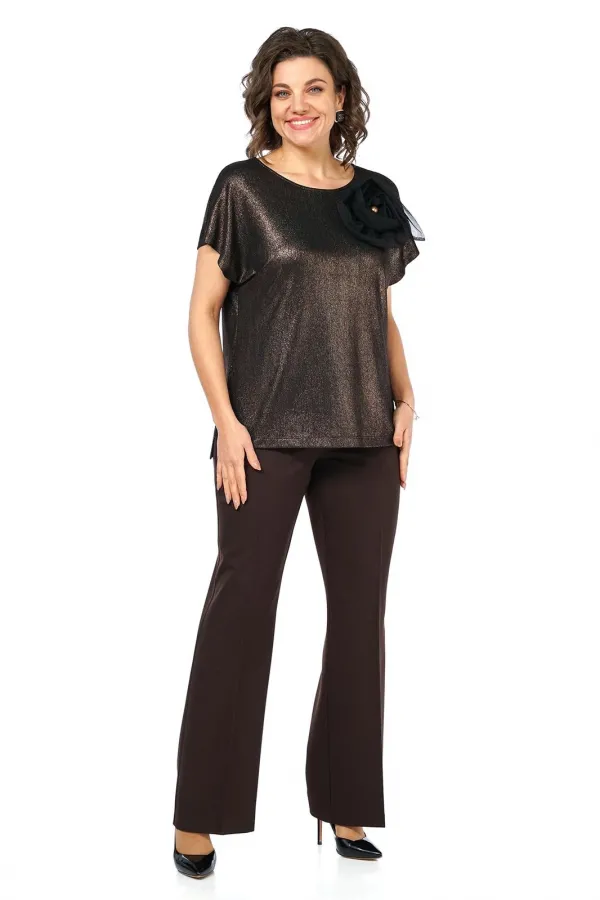 Ткань Блуза трик. полт. с золотым напылением 60%П/Э 36%нейлон 4%спандекс Брюки платьево-костюмного ассортимента 62%П/Э 35%вискоза 3%эластан