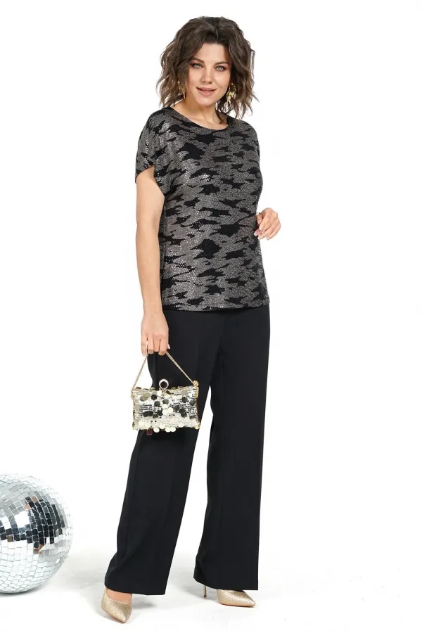 Комплект (блуза+брюки)Блуза женская прямого, свободного силуэта, со спученной линией плеча, с разно-уровневым низом (спинка длиннее на 4,0см), по боковым с разрезами. Декорирована съёмным украшением.Брюки женские длинные... Читать далее...