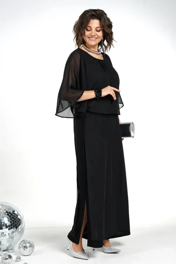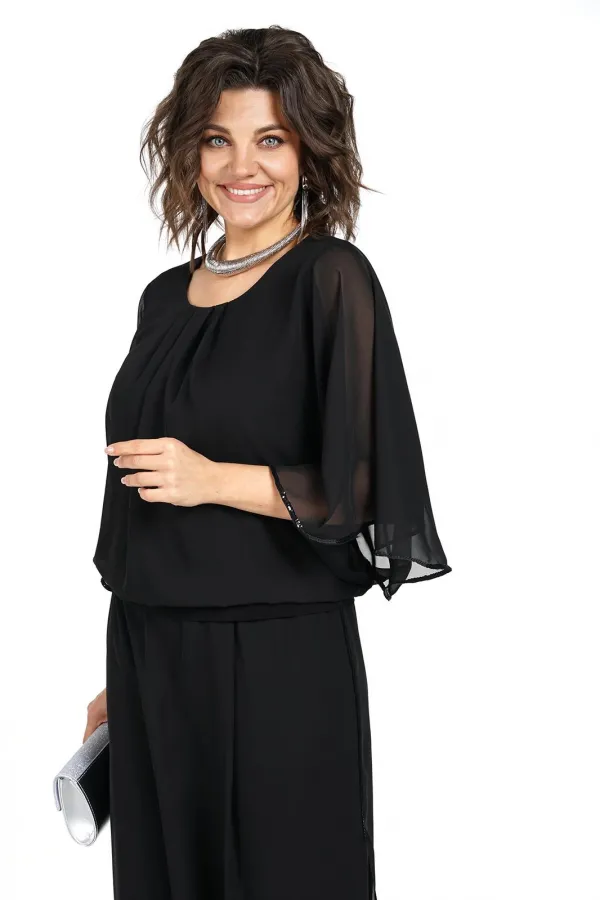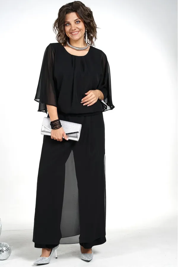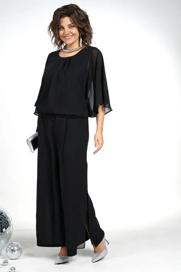 Комплект женский 2-х предметный состоит из блузона и юбки-брюк.Блузон прямого свободного силуэта, понизу с притачным поясом, двухслойный: нижняя часть (выполнена из трик. полотна) без рукавов, верхняя часть с небольшим н... Читать далее...