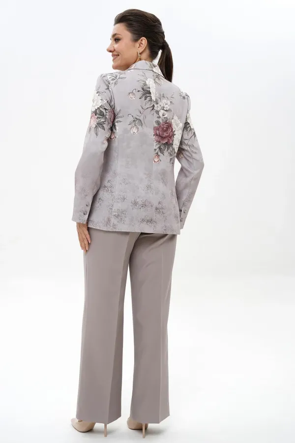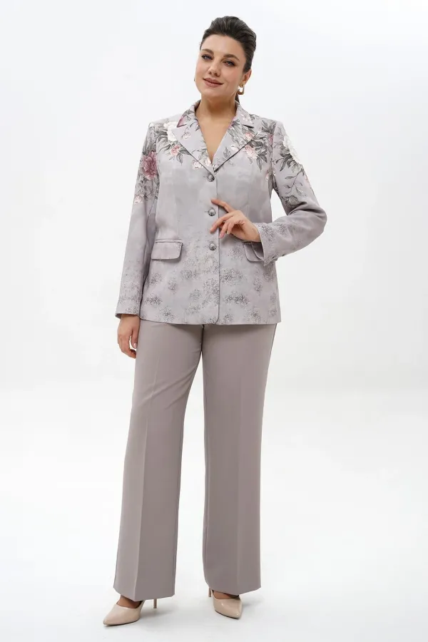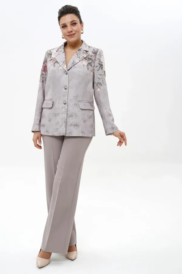 Комплект женский 2-х предметный состоит из жакета и брюкКомплект женский 2-х предметный состоит из жакета и брюк.Жакет полуприлегающего силуэта, частично на подкладке (перед, спинка), со смещёнными к спинке боковыми швами, с застёжкой на петли и пуговицы.
