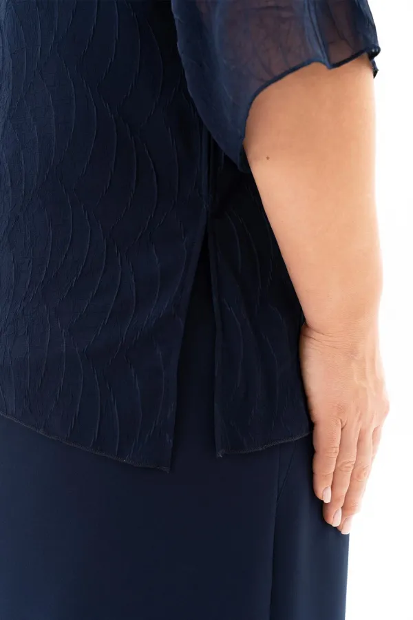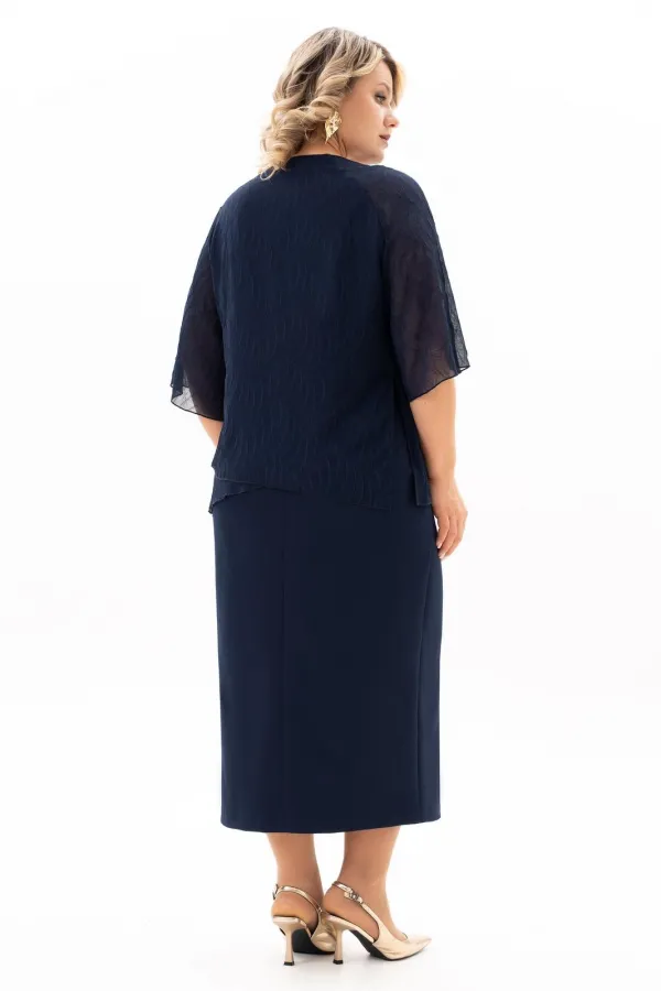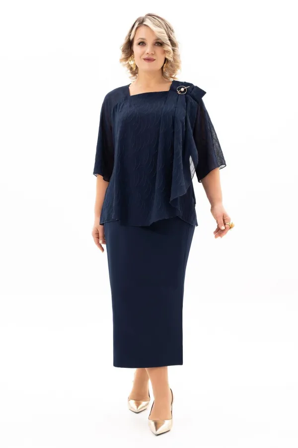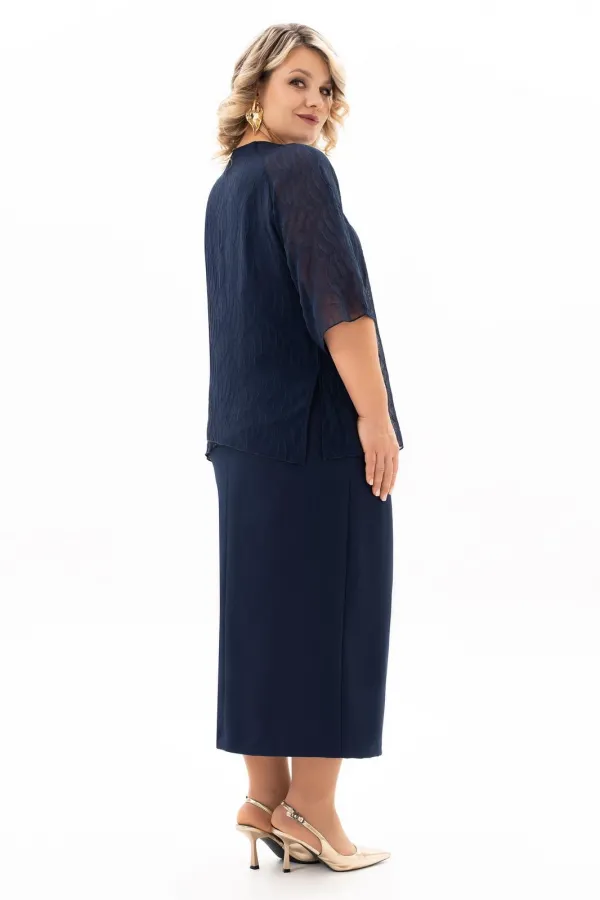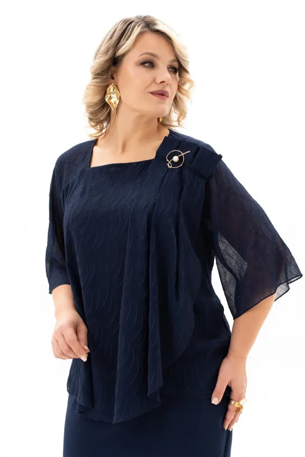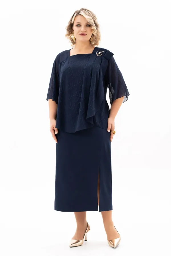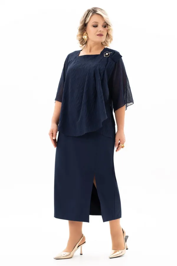 В мире моды женский костюм, состоящий из юбки и блузы, занимает особое место, объединяя элегантность, комфорт и практичность. Наш костюм, выполненный из высококачественной ткани c стрейч-эфектом. На полочки блузы есть нагрудные выточки с проймы, фигурный вырез горловины. Верхняя часть переда блузы декорирована мягкими складками и съёмной брошью, в боковых швах разрезы. Спинка без среднего шва. Модель блузы имеет и втачной рукав и реглан, длиной 3/4. Юбка демонстрирует утончённый дизайн с небольшим разрезом, который добавляет нотку игривости и женственности. Разрез не только делает образ более динамичным , но и придаёт ему определённую изюминку, позволяя Вам чувствовать себя уверенно и раскрепощено . Удобная и комфортная юбка на подкладке, слегка заужена к низу с застёжкой сзади на молнию и пуговицу. По поясу в области боковых швов есть эластичная тесьма, которая создаёт удобную посадку юбки на талии. Отличный вариант для офиса и вечернего гардероба, а также и просто для повседневного применения. Грация, изящество, утончённые декоративные элементы делают этот костюм уникальным. В этом костюме Вы будете неотразимы как в повседневной жизни, так и на любом торжестве.