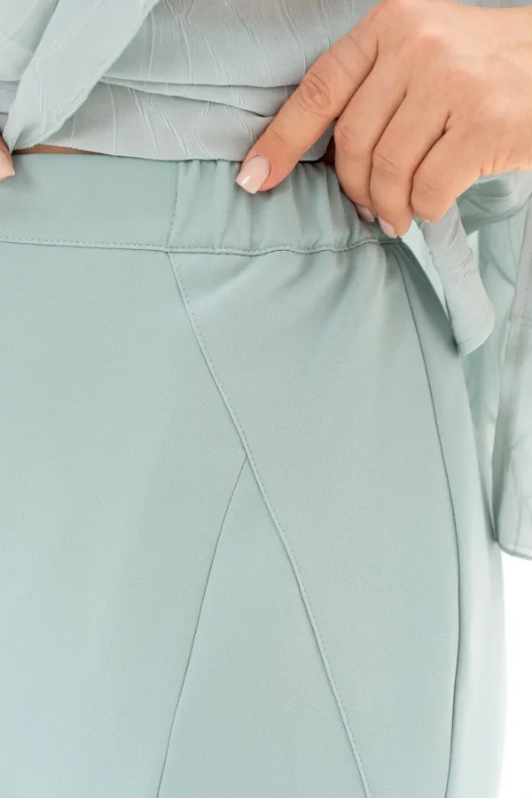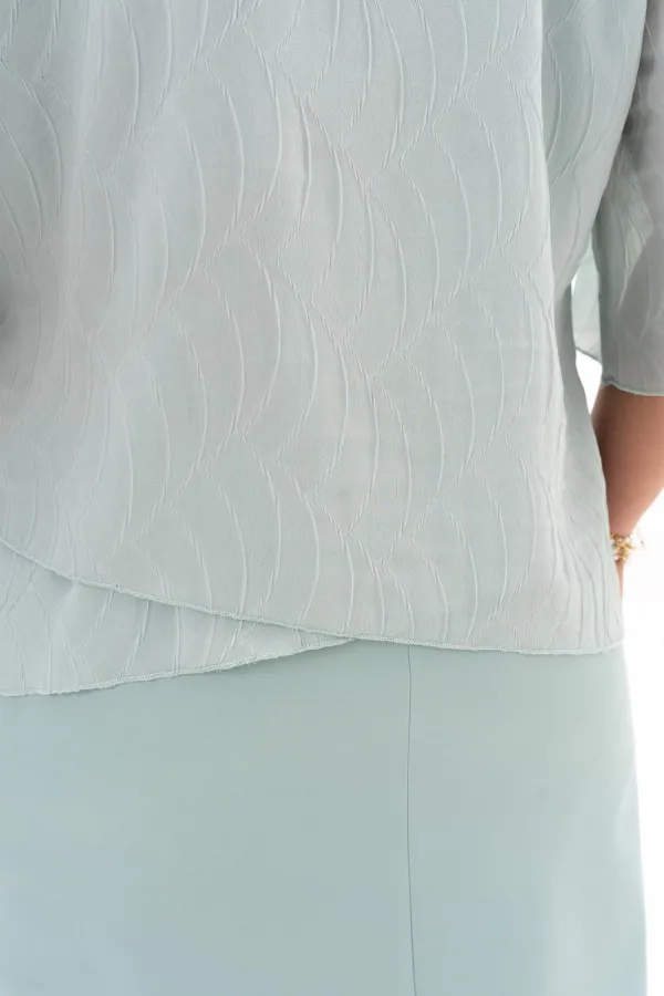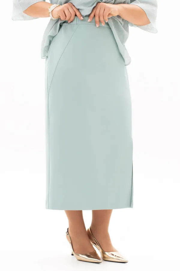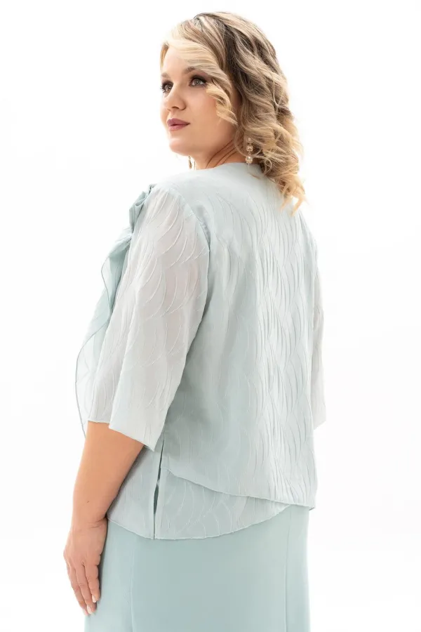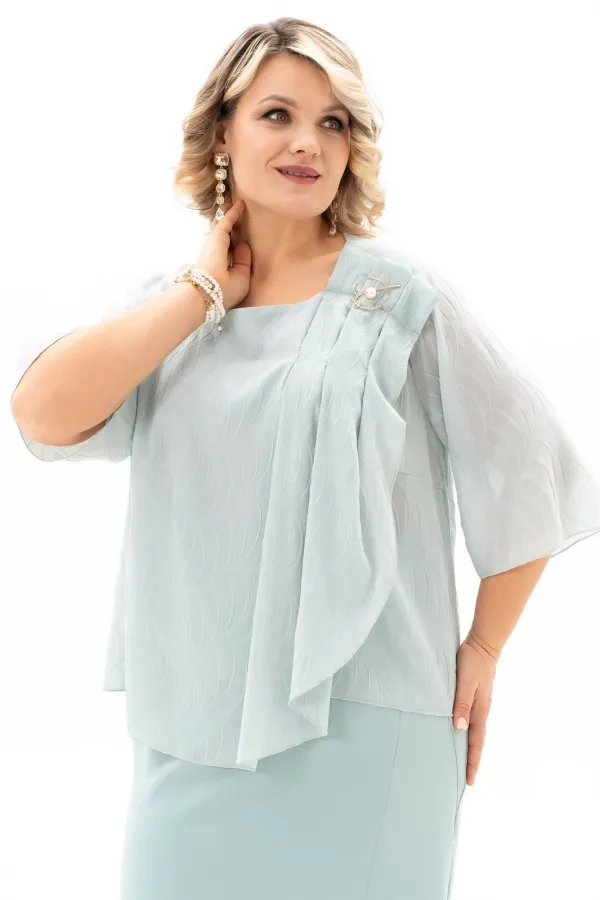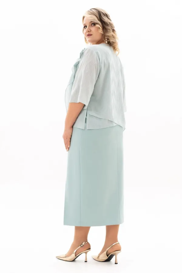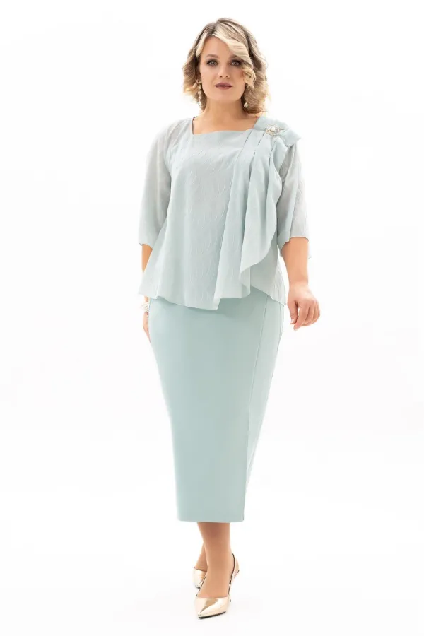 В мире моды женский костюм, состоящий из юбки и блузы, занимает особое место, объединяя элегантность, комфорт и практичность. Наш костюм, выполненный из высококачественной ткани c стрейч-эфектом. На полочки блузы есть нагрудные выточки с проймы, фигурный вырез горловины. Верхняя часть переда блузы декорирована мягкими складками и съёмной брошью, в боковых швах разрезы. Спинка без среднего шва. Модель блузы имеет и втачной рукав и реглан, длиной 3/4. Юбка демонстрирует утончённый дизайн с небольшим разрезом, который добавляет нотку игривости и женственности. Разрез не только делает образ более динамичным , но и придаёт ему определённую изюминку, позволяя Вам чувствовать себя уверенно и раскрепощено . Удобная и комфортная юбка на подкладке, слегка заужена к низу с застёжкой сзади на молнию и пуговицу. По поясу в области боковых швов есть эластичная тесьма, которая создаёт удобную посадку юбки на талии. Отличный вариант для офиса и вечернего гардероба, а также и просто для повседневного применения. Грация, изящество, утончённые декоративные элементы делают этот костюм уникальным. В этом костюме Вы будете неотразимы как в повседневной жизни, так и на любом торжестве.