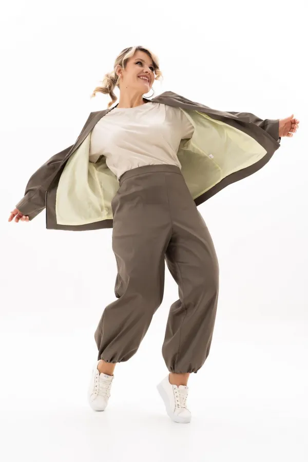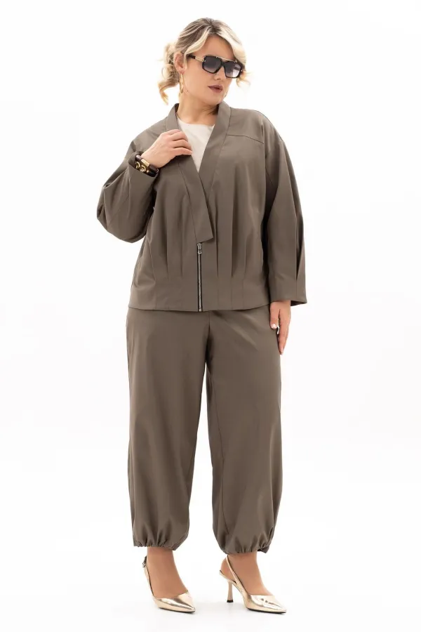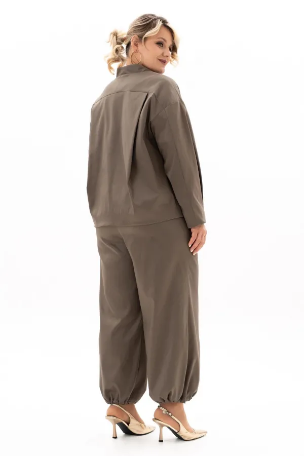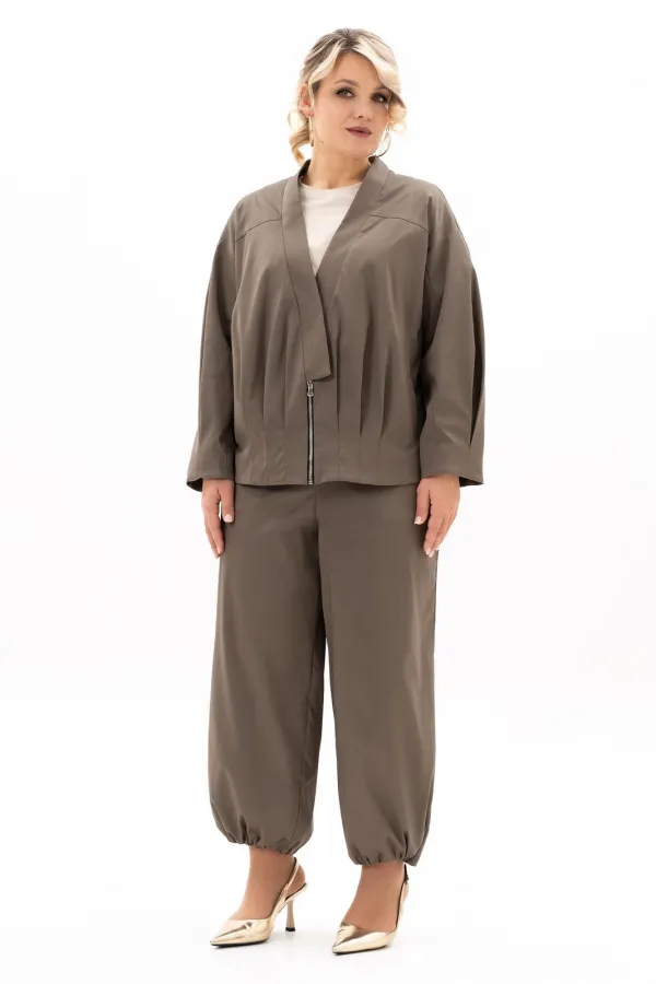 Представляем трех предметный комплект Алладин. Лёгкий жакет-курточного типа на подкладке, майка и брюки-алладины подходит для девушек любого возраста. Костюмная ткань с хорошим стрейч-эффектом добавит комфорта при носке изделия. Жакет свободного силуэта на подкладке с воротником-стойка. Спинка без среднего шва c отрезной кокеткой, где заложены небольшие складки. По переду жакета есть застроченные складки от низа, карман в листочку, застёжка на молнию и потайной магнит. Рукав втачной, длинный, по низу есть также застроченные складки. Этот демисезонный жакет станет отличным вариантом для весенних и осенних дней, когда хочется выглядеть привлекательно и чувствовать себя комфортно и модно. Майка из вискозы с круглым вырезом горловины, спущенным плечом, коротким рукавом. Удобные и комфортные брюки-алладины-это универсальная модель для повседневной носки, отдыха, прогулок. Этот комплект- незаменимая в гардеробе вещь, которая подчеркнёт всю утончённость женской натуры и позволит всегда чувствовать себя комфортно. Брюки идут с карманами в боковых швах. Пояс в области задней части брюк дополнен эластичной тесьмой, по низу брюк есть фиксаторы и эластичный шнур для регулировки ширины. Свободный широкий силуэт ,мягкая посадка и комфортная резинка на талии обеспечит удобство и свободу движений. Элегантная повседневная модель для города. Замечательный комплект в Ваш гардероб!