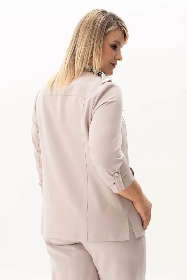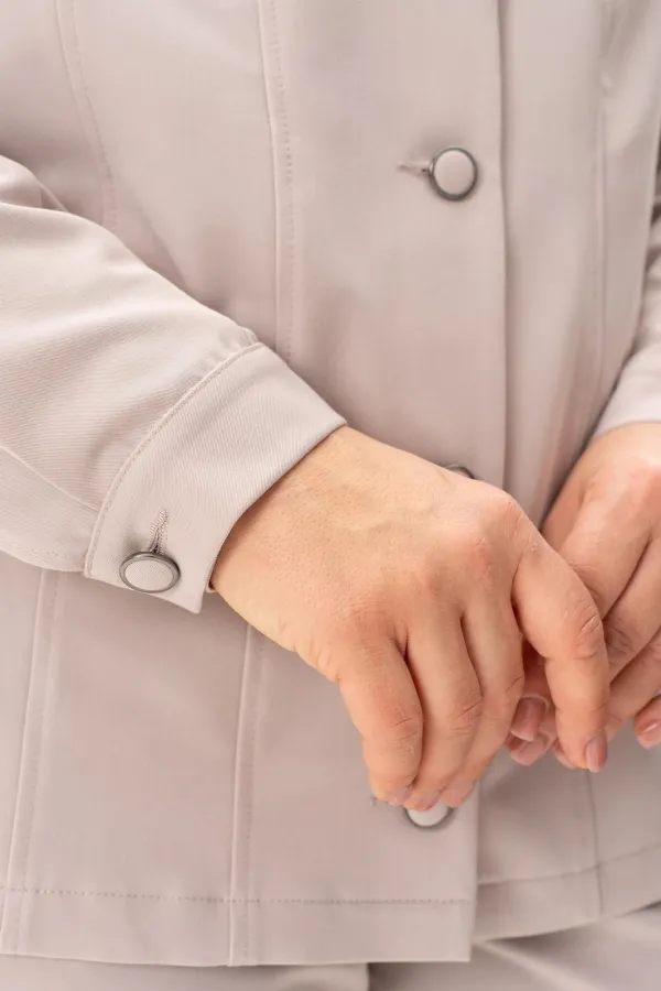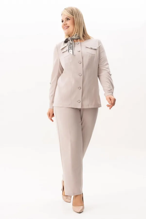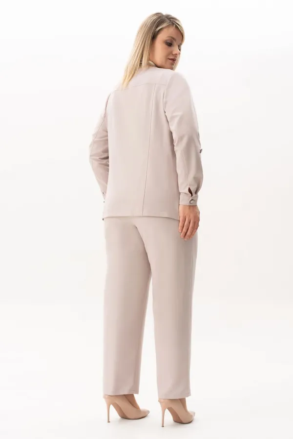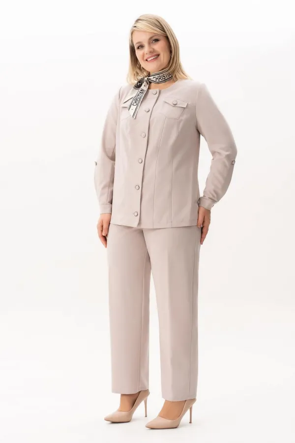 Брючный костюм из костюмной ткани гальяно - это идеальное сочетание комфорта и элегантности. Такой костюм подходит как для офисного делового образа, так и для повседневного ношения. Жакет костюма выполнен в классическом стиле на пуговицах, без воротника и с накладными карманами. Рукав длинный на манжете с патой на петлю и пуговицу. По боковым швам обработаны разрезы. Брюки костюма имеют прямой крой, что позволяет создать строгий и элегантный образ. Карманы на брюках расположены по бокам, что добавляет практичность и функциональность. Пояс брюк на резинке. Этот костюм не только обеспечит Вам ощущение комфорта в любой ситуации, но также придаст изящность и женственность Вашему образу. Если к костюму добавить из Вашего гардероба нарядную блузу - получится нарядный комплект.