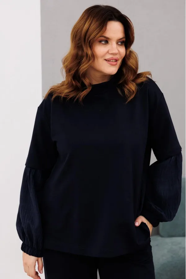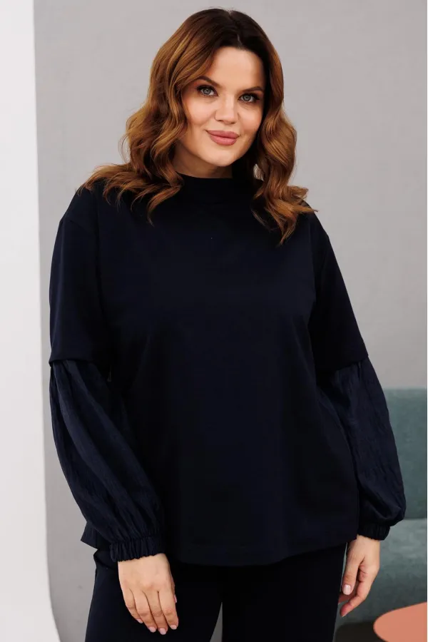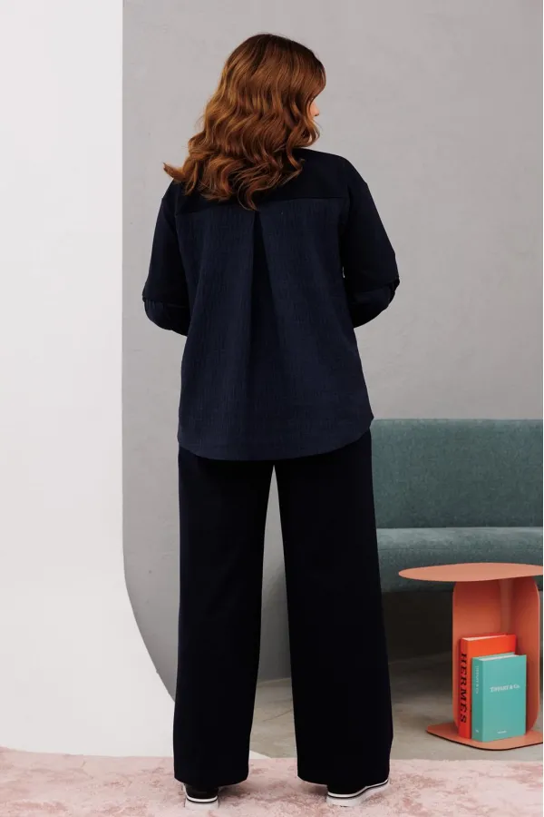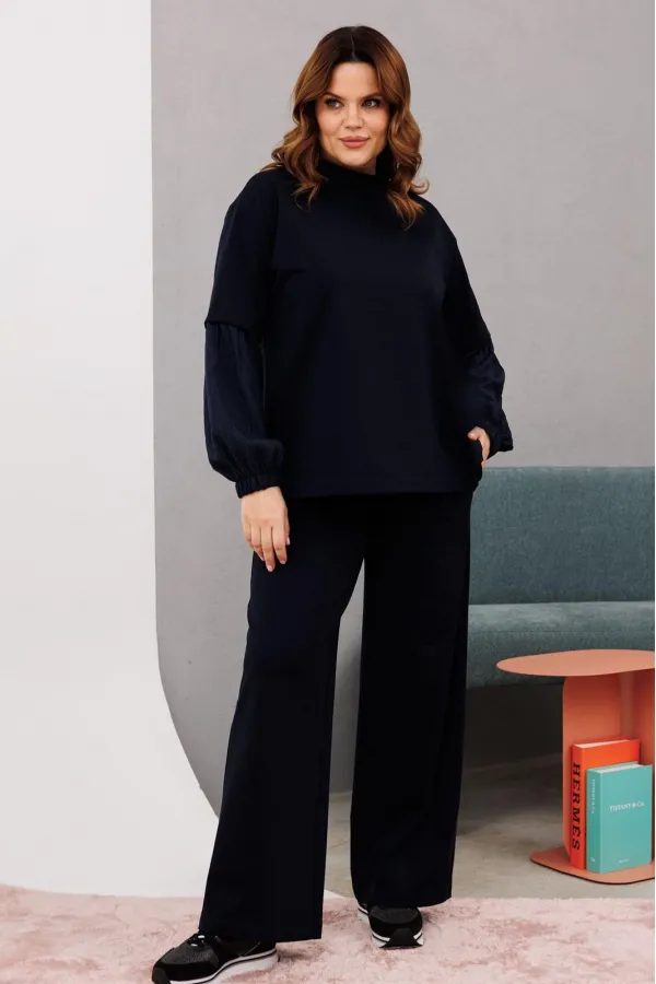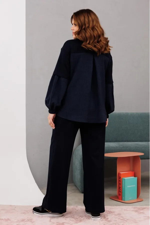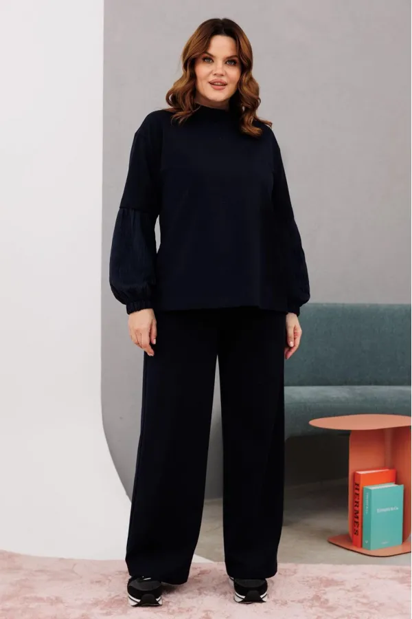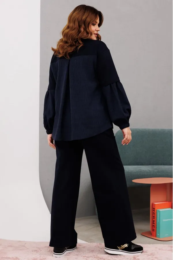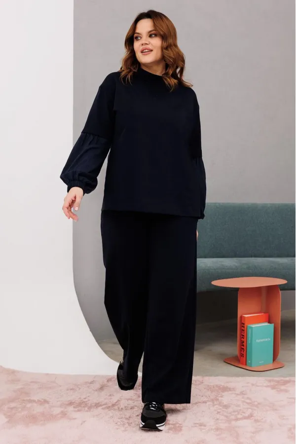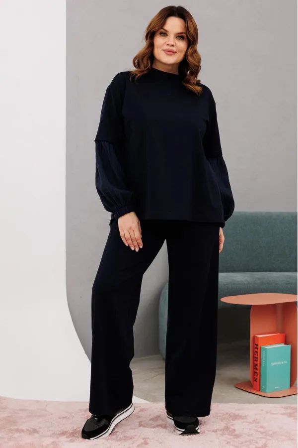 Шикарный трикотажный женский костюм от бренда Anastasia, идеальный для любого случая. Этот костюм сочетает в себе элегантность и комфорт, что делает его подходящим как для деловых встреч или домашней одежды, так и для праздничных мероприятий. Джемпер прямого силуэта со спущенным плечом. Полочка трикотажная. По спинке идет отрезная кокетка и вставка из отделочной ткани со встречной складкой по центру, низ фигурный. Воротник - стойка. По рукаву идет подрез из отделочной ткани. Сверху по подрезу сборка, низ рукава на резинке. Брюки прямые, пояс на резинке с завязками, по бокам карманы.Это не только универсальная одежда для деловых встреч или прогулок. Подойдет как для взрослых женщин, так и для подростков. Отдельный части костюма легко будут сочетаться с вещами из Вашего гардероба. Модель можно отнести к стилю спортивный кэжуал, спортивный шик. Костюм можно носить с кроссовками или ботинками. Обязательно добавьте наш бренд в избранное и следите за новинками, распродажами, скидками и акциями! Хороших покупок от «Анастасия» Длина джемпера (по спинке):(48-52)- 68см, (54-58)-71 см. Длина рукава: (48-52)-57см, (54-58)-59 см. Длина брюк: (48-52)- 103 см, (54-58)-106 см