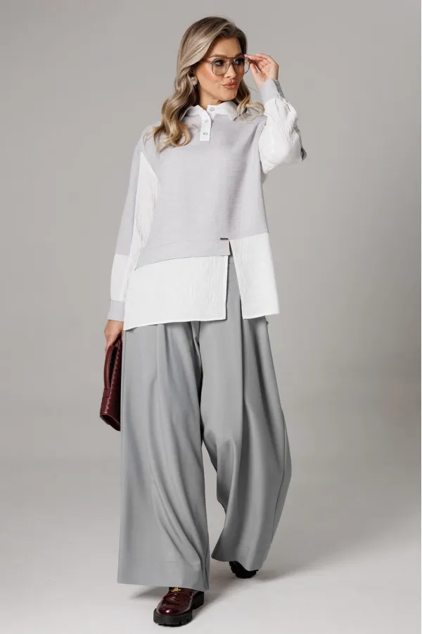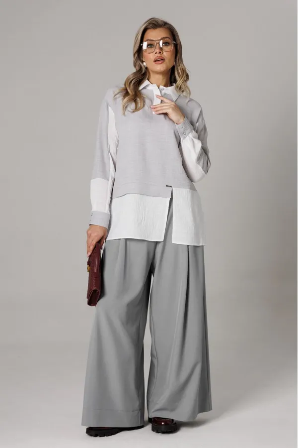 Комплект из костюмной ткани создан для тех, кто ценит комфорт и элегантность в каждой детали. В комплект входит блузка и штаны палаццо. Оверсайз крой придаёт костюму особый шарм и дает свободу движений. Высокая посадка и... Читать далее...