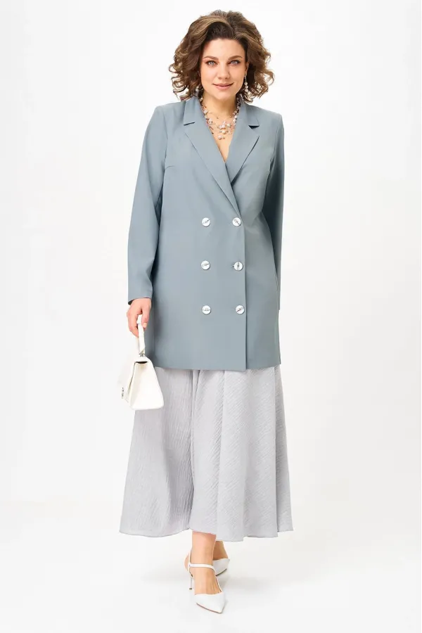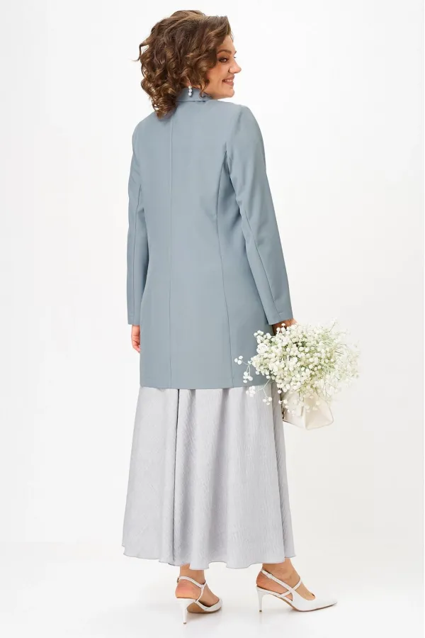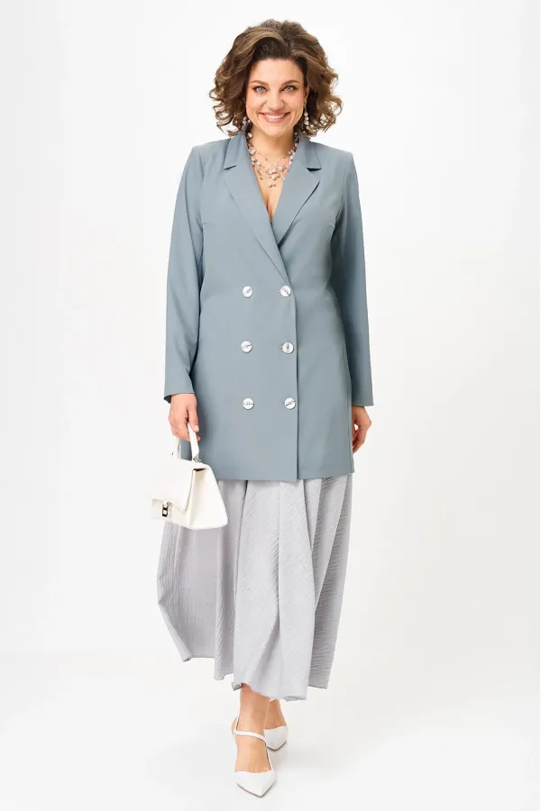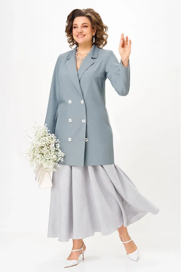 Женский деловой костюм с юбкой макси от Anastasia- для стильных и уверенных в себе женщин. Изготовленный из премиум ткани, этот комплект включает удлиненный пиджак и юбку. Костюм двойка позволяет создавать как нарядные образы для вечерних выходов, так и строгие луки для офиса. Пиджак имеет удивительный комфортный крой, который скроет все недостатки фигуры. Пуговки служат элементом, придающим модели оригинальность. Пиджак полуприлегающего силуэта. Застежка двубортная на петли и пуговицы. Воротник пиджачного типа. Приталивание создается за счет бочка по полочке и спинке. Рукав вточной, двух шовный. Великолепный фасон-юбка солнце длиной макси и резинкой на поясе обеспечивает идеальную посадку по фигуре, подчеркивая ваши достоинства и создавая элегантный силуэт. Сочетание оригинального модного дизайна и классического стиля делает этот костюм настоящей находкой для вашего гардероба. Части комплекта вы можете легко носить как самостоятельные изделия. Юбку леко сочетать с различными верхами: топ, блузка, футболка, кружевной жакет, свитер или жакет из тексиля- все это позволит создавать различные образы на разные случаи. Благодаря своей длине пиджак можно носить как платье, а также дополнять различные комплдекты из вашего гардеоба. Почувствуйте себя уверенно и элегантно нашем комплекте! Длина по синке (48-52)-83см , (54-62)-86 см. Длина рукава:(48-52)-60см, (54-58)-62см, (60-62)-63см. Длинна юбки 98см.
