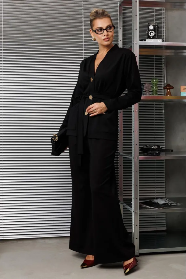 Шикарный трикотажный женский костюм от бренда Anastasia, идеальный для любого случая. Этот костюм сочетает в себе элегантность и комфорт, что делает его подходящим как для деловых встреч или прогулок. Комплект состоит из кардигана и брюк. Кардиган прямого силуэта. Застежка- планка с пуговицами. По полочке идут накладные карманы. Рукав втачной, одношовный. Подчеркнуть талию можно съемным поясом. В качестве декора- брендированная нашивка на кармане, перекликающаяся с золотыми пуговицами. Стильный костюм отлично подойдет для долгих прогулок или для работы, для офиса. Брюки -клеш, пояс на резинке. По внутреннему срезу по низу идут разрезы. Отдельный части костюма легко будут сочетаться с вещами из Вашего гардероба. Модель можно отнести к стилю кэжуал. Костюм можно носить с туфлями, кроссовками или ботинками. Обязательно добавьте наш бренд в избранное и следите за новинками, распродажами, скидками и акциями! Хороших покупок от «Анастасия». Длина (по спинке):(50-54)- см, (56-60)- см. Длина рукава: (50-54)-см, (56-60)- см. Длина брюк: (50-54):-см, (56-60)-см.