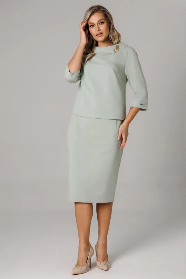 Женский костюм двойка из хлопкового трикотажного полотна станет базой вашего гардероба. Этот деловой комплект с блузкой плюс сайз станет отличным выбором для офисных работников и всех, кто ценит комфорт и стиль в одежде. Юбка без подкладки обеспечивает свободу движения, а длина (миди) делает ее универсальной для любого типа фигуры. Блузка без застежки с воротником шалевой формы - это не только функциональный, но и стильный женственный акцент в образе. Длина рукава в блузке plus size 3/4 делает костюм универсальным. В каччестве декора - брендированная нашивка на рукаве и брошь. Этот классический костюм создан для повседневной носки и будет радовать вас своей мягкостью и комфортом даже в самые холодные дни. Комплект шикарный и создан с учетом особенностей женской фигуры и идеально подойдет для обладательниц пышных форм, для высоких и невысоких. Он одинаково хорошо смотрится на стройных и плюс сайз, с большой и маленькой грудью. Благодаря своему строгому и элегантному дизайну, юбочный костюм станет незаменимым элементом вашего гардероба и поможет создать множество деловых и вечерних образов. Комплект без подклада, не на флисе, без начеса, ткань не просвечивает. Брошь в комплекте. Длина блузки-53см. Длина рукава (от горловины) - 55 см. Длина юбки-72 см.