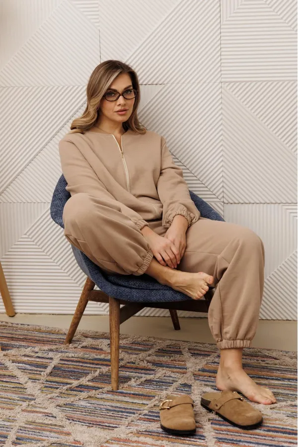 Стильный женский спортивный костюм из трикотажного футера от Anastasia станет незаменимой частью гардероба для активного отдыха и повседневной носки каждой модницы. Состоит из джемпера на молнии и брюк - джоггеров с высокой посадкой и боковыми карманами. Низ рукава, низ и пояс брюк на резинке. В качестве декора - нашивка по спинке и брендированная металлическая нашивка на горловине. Наслаждаться спортивными активностями будет комфортно. Материал теплый и приятный, отлично подойдет для любой погоды. Мягкая резинка довяз на поясе и по горловине обеспечивают комфортную посадку и носку и не будут стеснять движения. Костюм спортшик подходят для различных видов деятельности: от утренних пробежек до поездок по городу на велосипеде или встреч с друзьями в кафе. Подойдет как для взрослых женщин и девушек, в том числе кто предпочитает большие размеры, так и для девочек подростков. Ткань долговечная, простая в уходе, не мнется и не скатывается, а оригинальный дизайн - стежка позволит всегда оставаться в центре внимания! Независимо от того, занимаетесь ли вы спортом, ходите в такой одежде дома или просто хотите выглядеть стильно и модно - наш костюмчик станет верным спутником. Почувствуйте себя уверенно и комфортно с стильным костюмом от Анастасия! Комплект без подклада, не на флисе, без начеса, ткань не просвечивает. Длина джемпера по спинке: (50-54)-58 см, (56-60)-60см. Длина рукава: (50-54)-64см, (56-60)-65см, Длина брюк: (50-54)-97см , (56-60)-100см