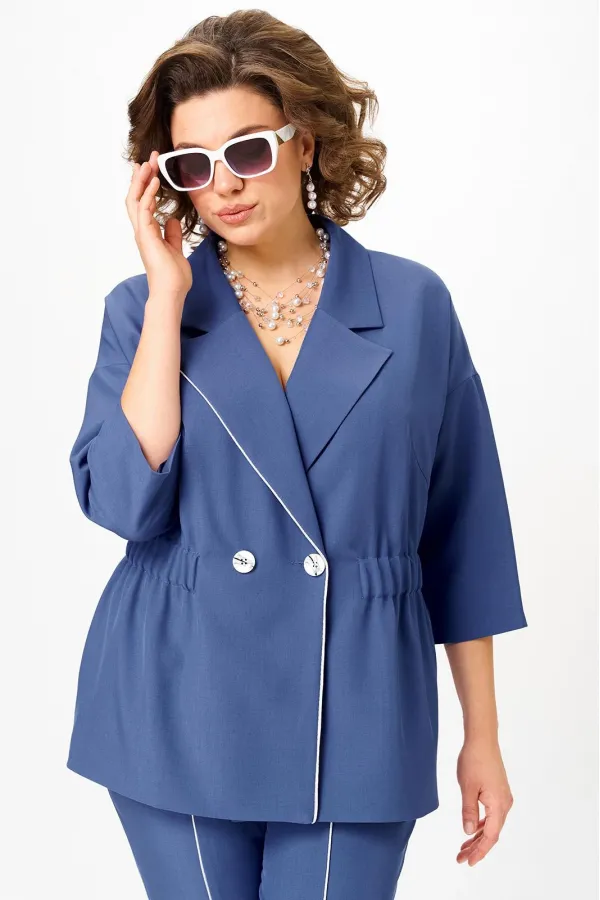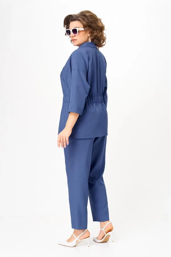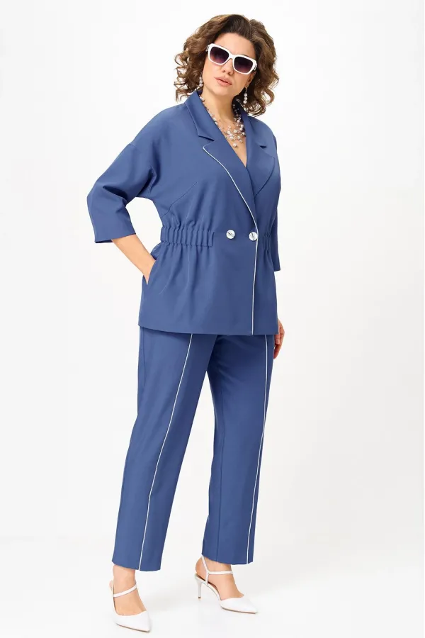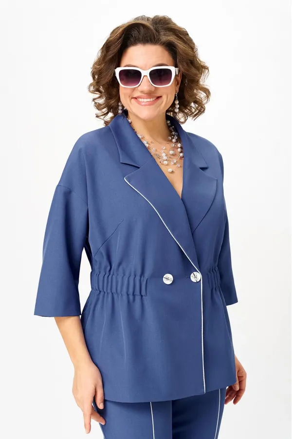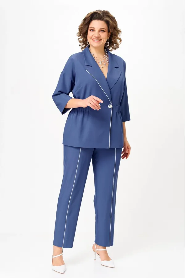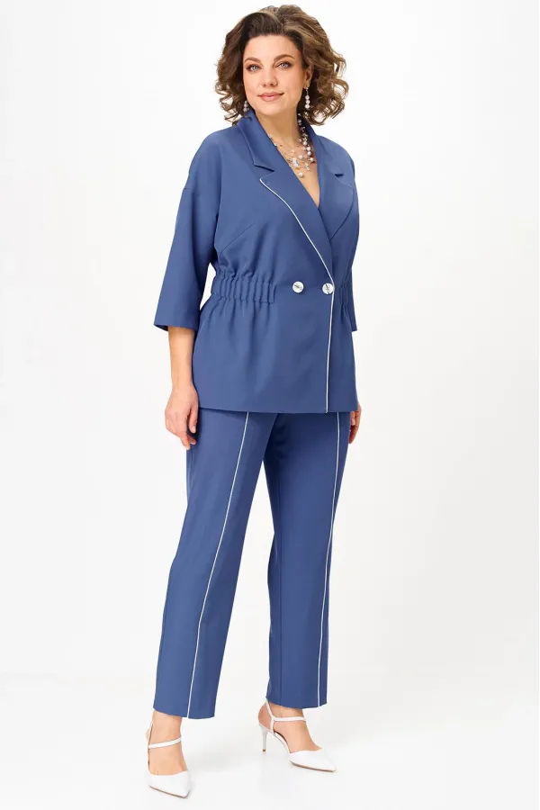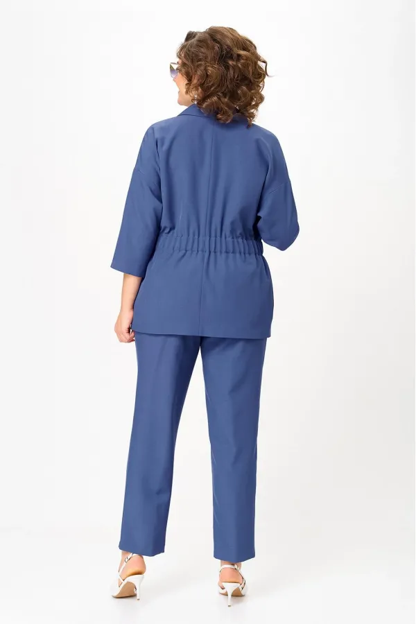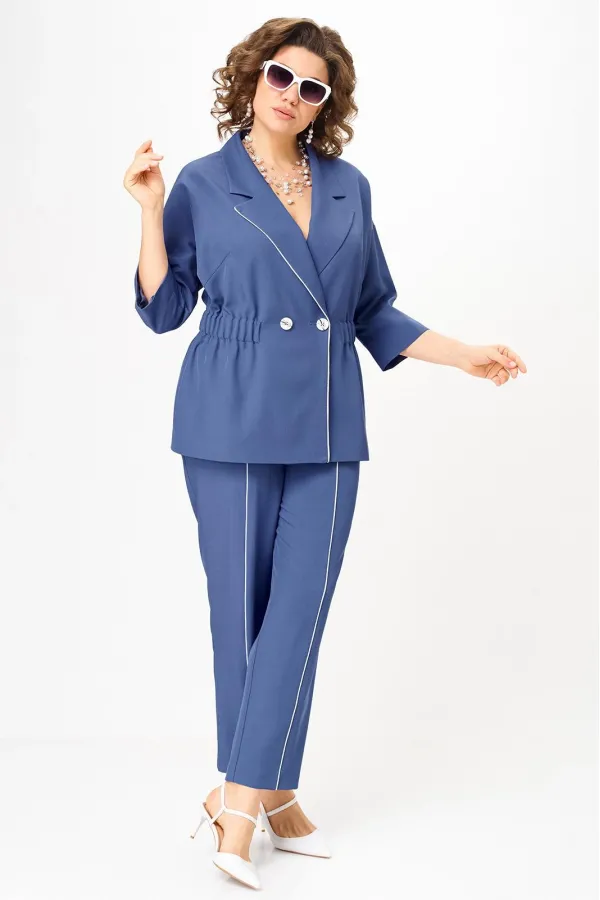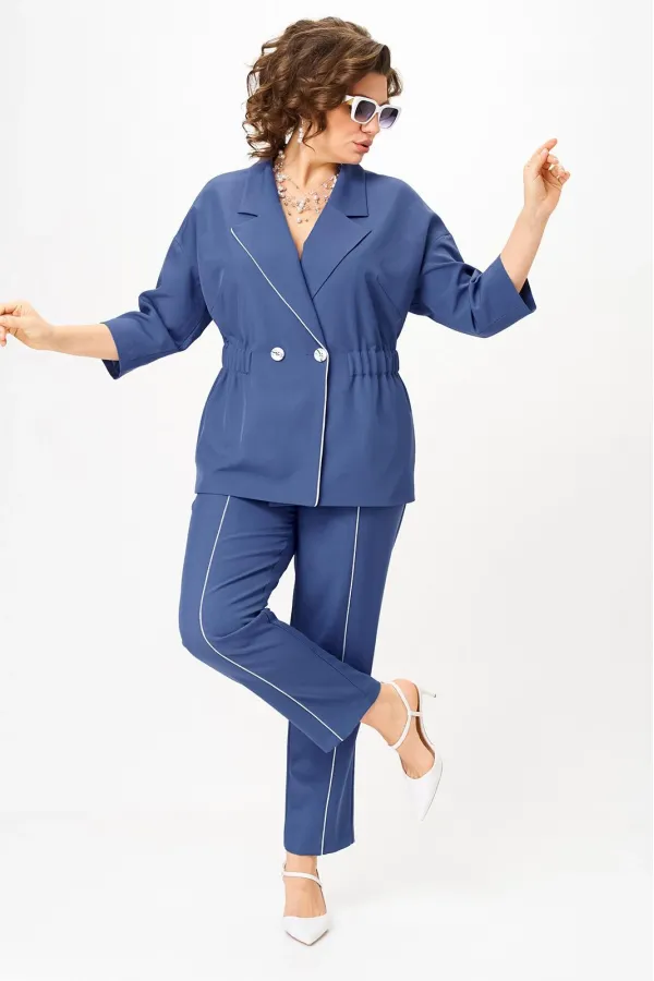 Стильный женский костюм от бренда Anastasia, идеальный для любого случая. Этот костюм сочетает в себе элегантность и комфорт, что делает его подходящим как для деловых встреч или прогулок. Комплект состоит из жакета и брюк. Костюм женский 2-хпредметный (жакет и брюки). Жакет на подкладке из текстильной ткани полуприлегающего силуэта со спущенным плечом. Приталивание по талии создается за счет кулиски с резинкой. По полочке идут грудовые выточки из бокового шва. Застежка двубортная. Воротник английского типа. По правому борту идет отделка- кант. По бокам карманы. По спинке средний шов. Рукав 3/4. Брюки, зауженные к низу. Пояс на резинке. По передней части – вставка кант. Стильный костюм отлично подойдет для долгих прогулок или для работы, для офиса. Брюки -клеш, пояс на резинке. По внутреннему срезу по низу идут разрезы. Отдельный части костюма легко будут сочетаться с вещами из Вашего гардероба. Модель можно отнести к стилю кэжуал. Костюм можно носить с туфлями, кроссовками или ботинками. Обязательно добавьте наш бренд в избранное и следите за новинками, распродажами, скидками и акциями! Хороших покупок от «Анастасия». Длина (по спинке):(50-52)- 69см, (54-58)-70 см, (60-64)-71см. Длина рукава: (50-64)- 32см. Длина брюк: (50-54):- 91см, (56-60)- 64см, (62-64)-96см