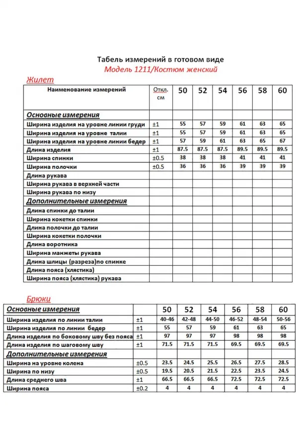 Костюм состоит из жилета и брюк. Костюм выполнен из однотонной ткани, жилет на подкладке.
