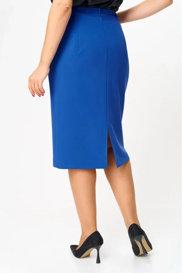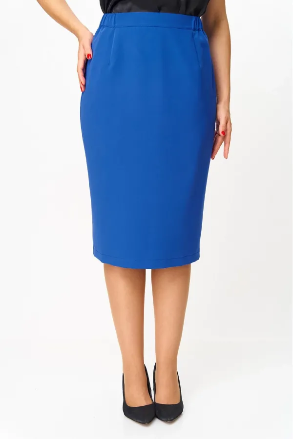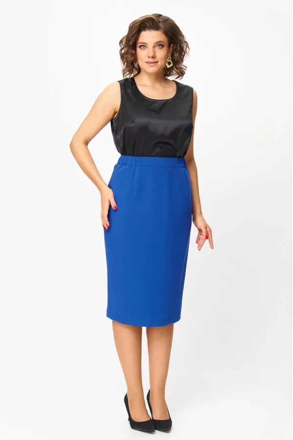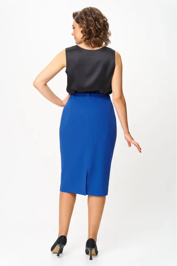 Юбка прилегающая по бедрам, зауженная к низу. Передняя часть юбки с талиевыми вытачками. Задняя часть юбки с талиевыми вытачками и со средним швом, в верхней части которого обработана застежка на потайную молнию, в нижней части разрез. Юбка на притачном поясе, с эластичной тесьмой и застежкой на петлю и пуговицу. Юбка на подкладке.
