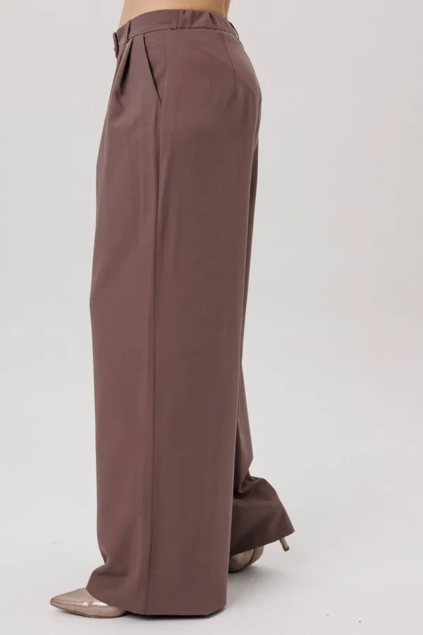 Брюки-палаццо с высокой посадкой, мягкими складками и боковыми карманами создают элегантный и комфортный силуэт, который подчеркивает фигуру и подходит для разных сезонов.