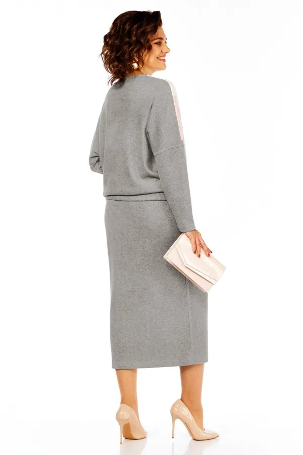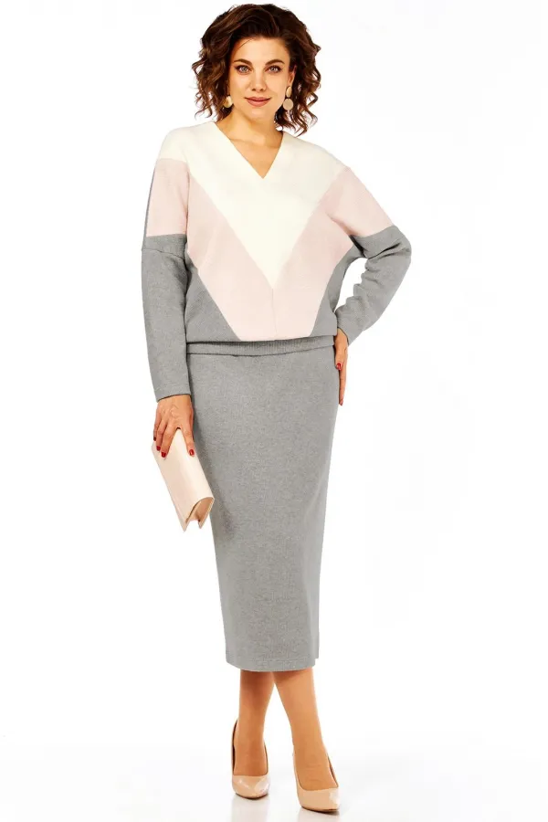 Костюм женский двухпредметный состоит из свободного джемпера и длиной юбки,выполнен из трикотажного полотна под вельвет в мелкий рубчик 3 цветов.Джемпер силуэта летучая мышь . Перед со средним швом и косыми подрезами от ... Читать далее...