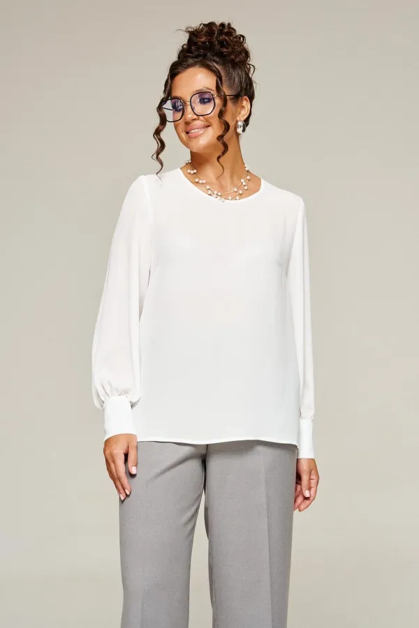 Блузка прямого, свободного силуэта, выполнена из шифонового полотна.