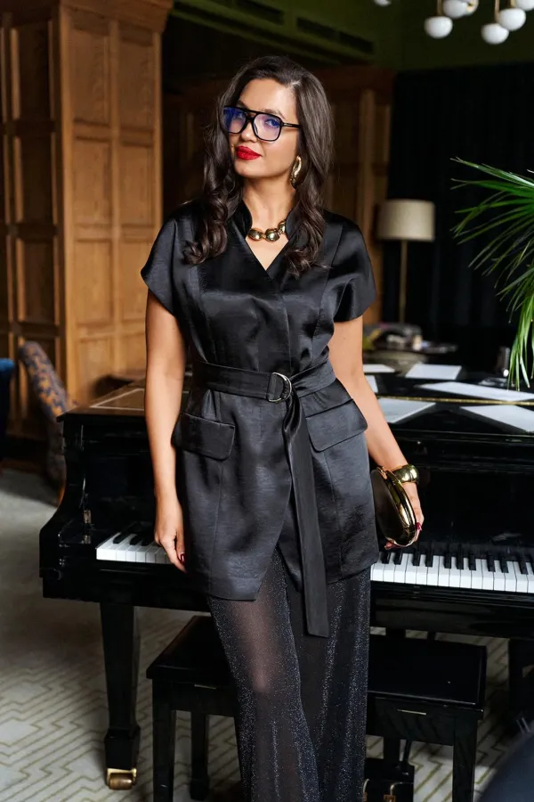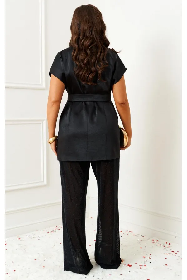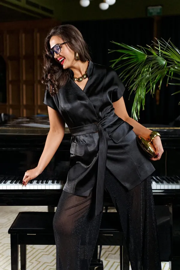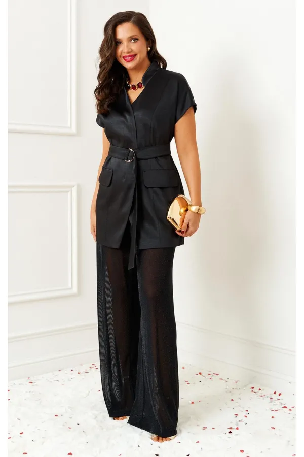 Яркий акцентный комплект - идеальный пример сочетания комфорта и стиля, а также протест привычным деталям. Брюки из полупрозрачной ткани с атласным жакетом деликатно подчеркнут нежную женственность и динамичную дерзость в едином образе.