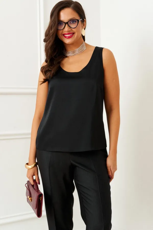 Топ полуприлегающего силуэта. Горловина округлой формы.