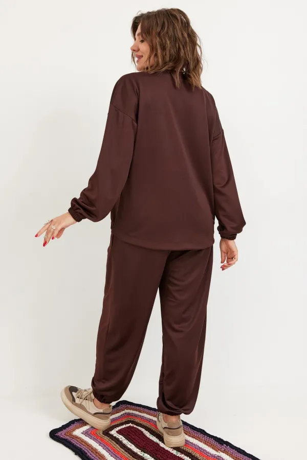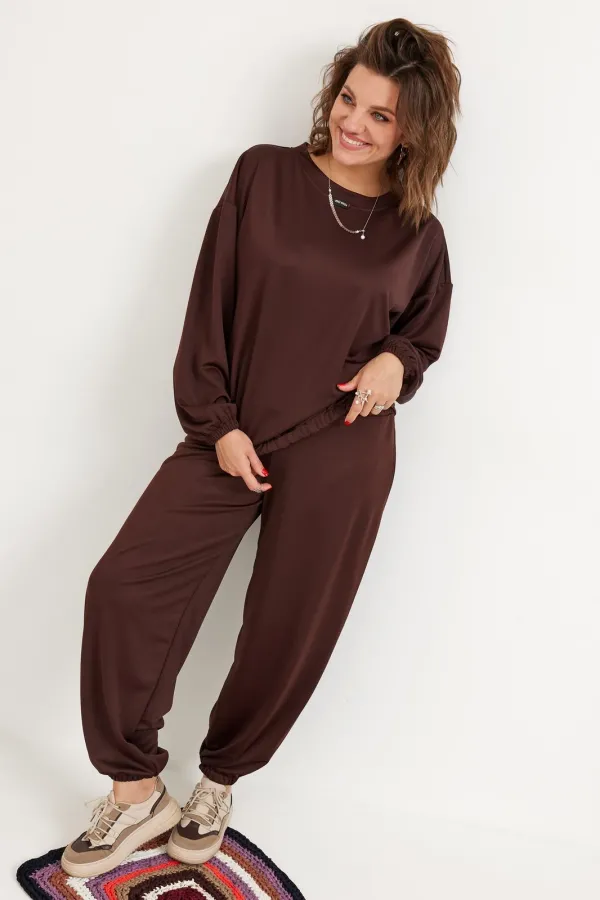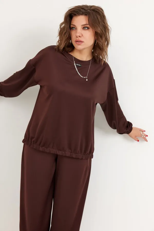Вы непременно полюбите этот уютный, универсальный трикотажный комплект, состоящий из свитшота и брюк свободного кроя на средней посадке. Современный крой и оригинальная расцветка этой модели подарит чувство уюта и комфорта.