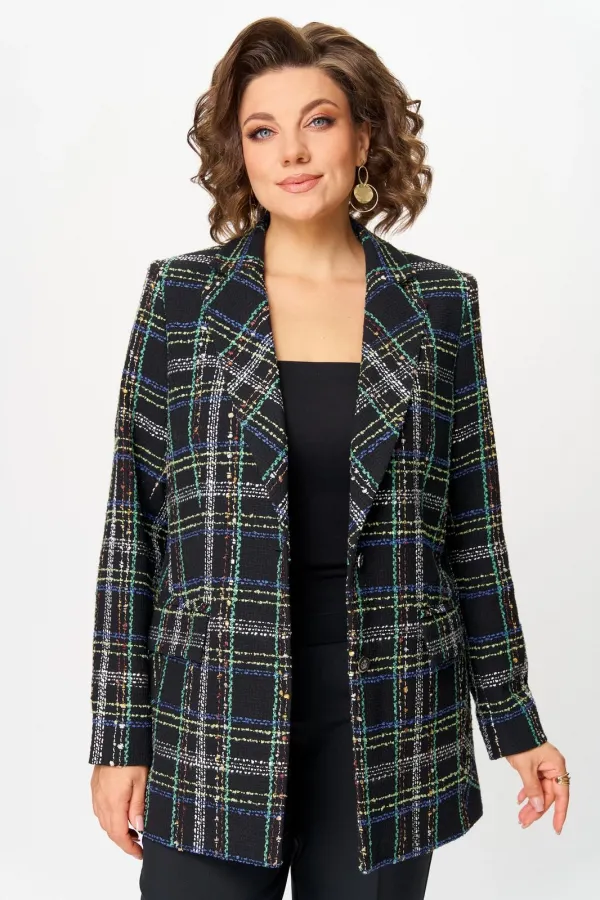 Комплект женский-двойка,из костюмной ткани, жакет удлиненный, свободного силуэта с центральной бортовой застежкой на пуговицы до линии перегиба лацкана. По переду имеется отрезной бочок и вертикальные вытачки. С прорезны... Читать далее...
