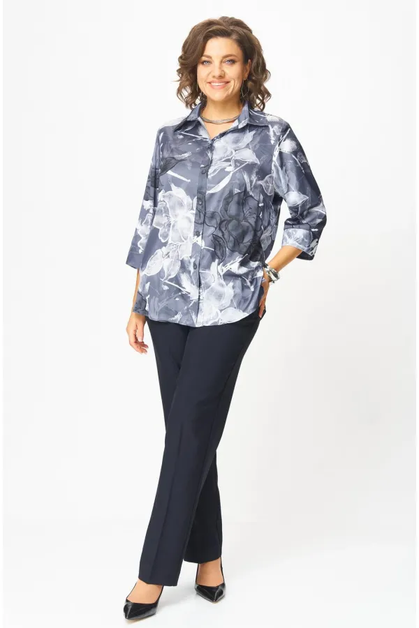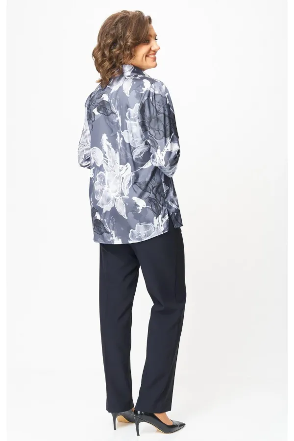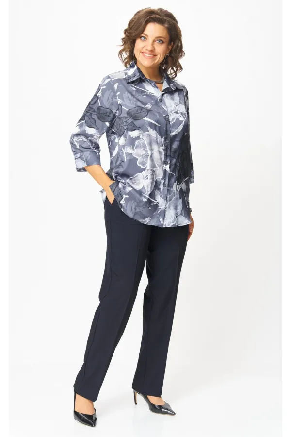 Этот комплект создан для того, чтобы вы забыли о вопросе «Что надеть?». Мы объединили две вещи, которые составляют основу стильного и практичного гардероба. Верх: блуза прямого кроя из нежного текстиля. Рукава 3/4 с манжетами и отложной воротник дарят образу лёгкость и утонченность. Центральная застежка на пуговицы и боковые разрезы добавляют практичности. Длина по спинке 74 см, длина рукава 45. Низ: классические прямые брюки с заутюженными стрелками, которые визуально вытягивают силуэт. Скрытая резинка по бокам гарантирует невероятный комфорт, сохраняя безупречный вид спереди. Длина брюк от талии по боковому шву 103 см.